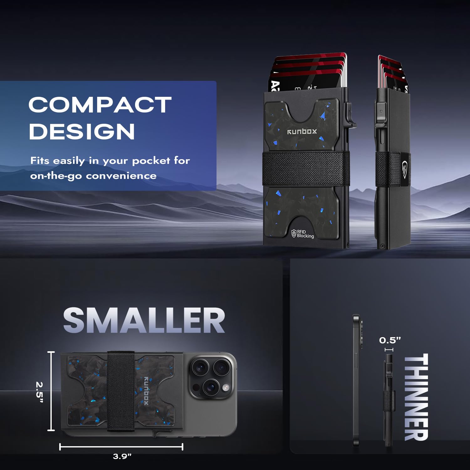Quick Access & Expandable Capacity (Holds 1-12 Cards): Experience effortless card access with our patented pop-up button mechanism – press to instantly eject cards. The main aluminum card holder compartment holds 4-6 cards(depending on embossed designs), while the expandable metal backplate adds 6-8 extra slots. *Total capacity varies with card thickness