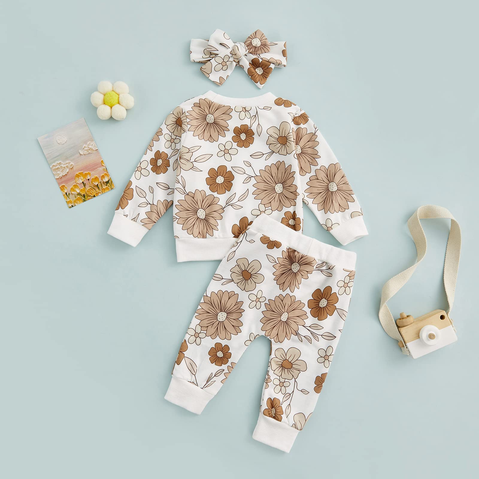 🏵️ Package included: 1*Sweatshirt Tops + 1*Long Pants + 1*Headband. 3pcs baby girl fall winter clothes