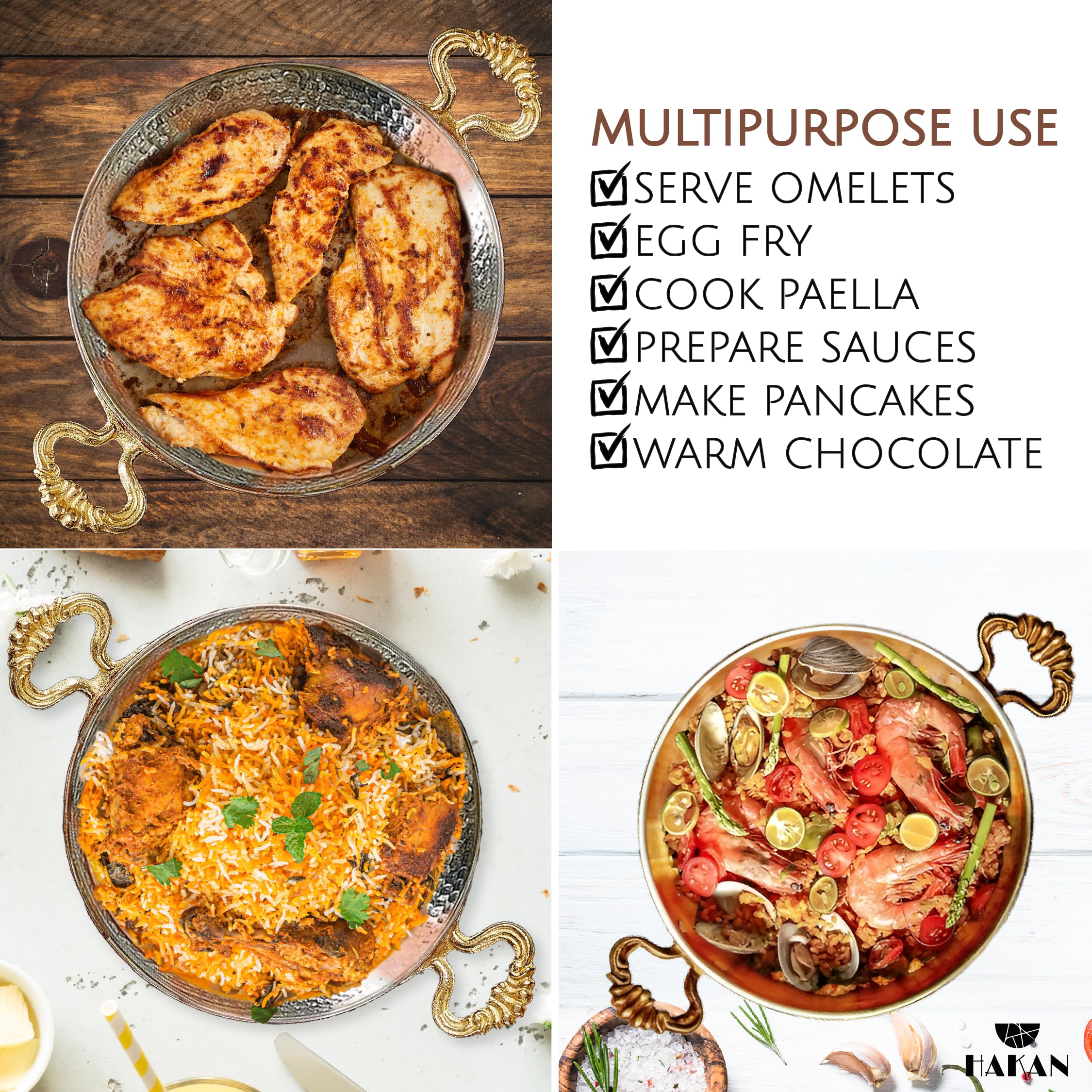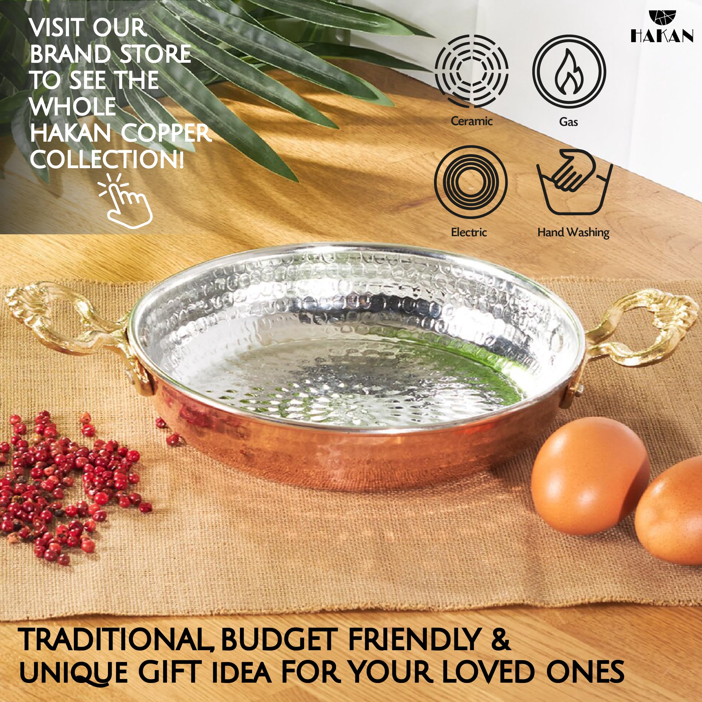 GREAT QUALITY & STYLISH DESIGN: Hakan omelette pan is made from premium copper for long-lasting performance. This frying pan is expertly handcrafted with a beautiful, hammered copper finish and double handles.