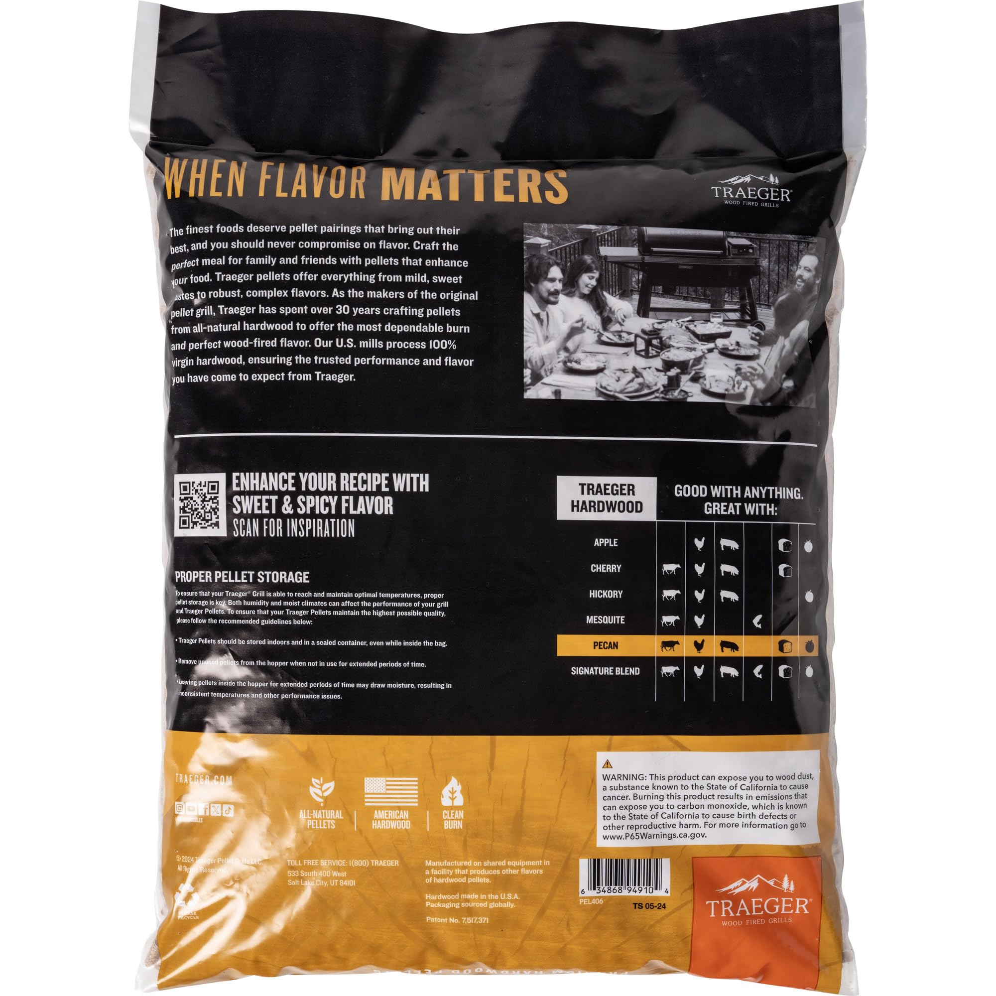 PECAN WOOD FIRED FLAVOR: Traeger Pecan Hardwood Pellets offer an ultra-versatile, slightly nutty flavor that works with any meat, not to mention veggies, fish, and even baked goods.