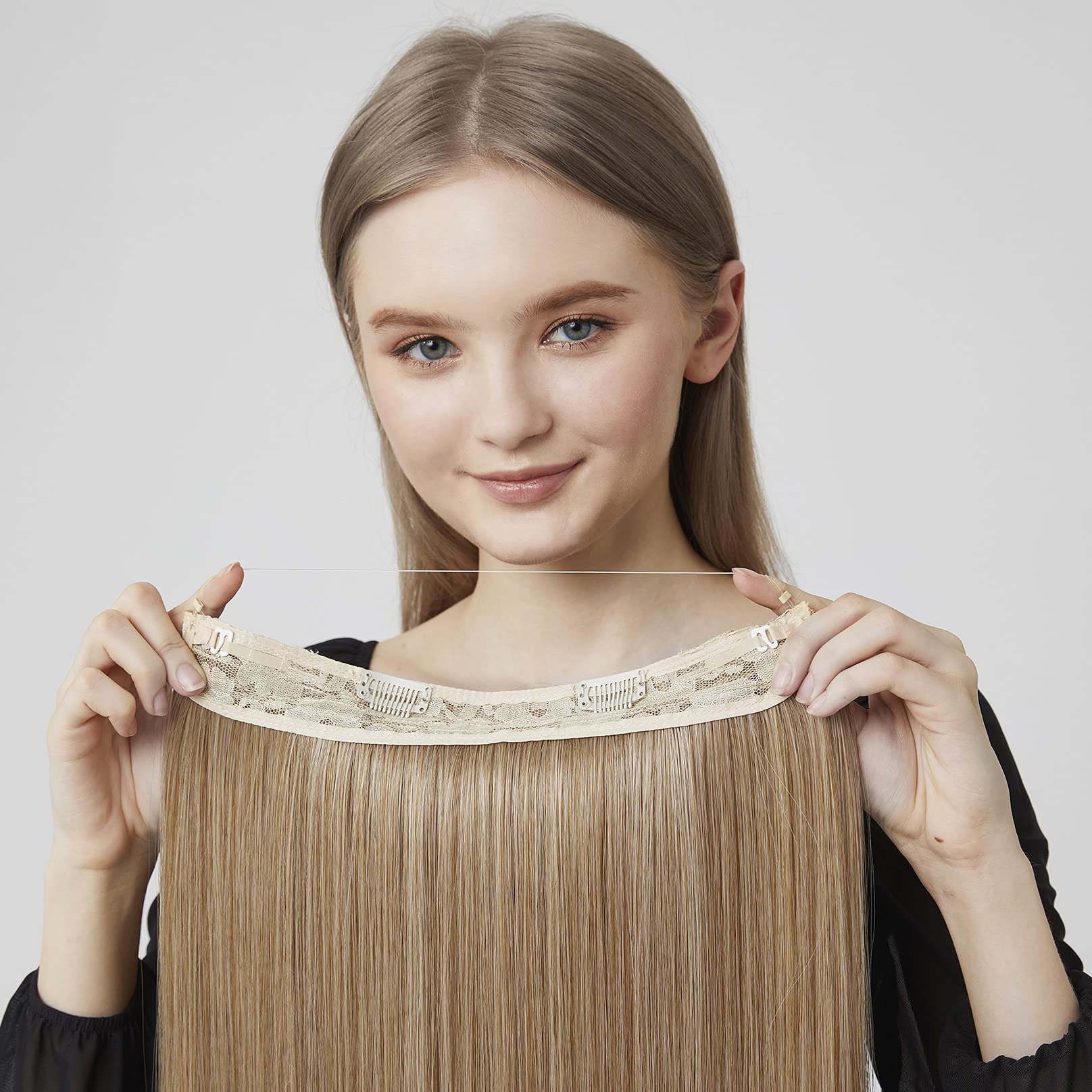 Secure Fit: Imported Korean nylon stretchy wire sit on top of your head which is custom fit to your head. Extra 2 security clips added on either side of the weft will keep the hair extension stay in place and not slip or fall out. PS: You can remove these 2 clips if you don't need them