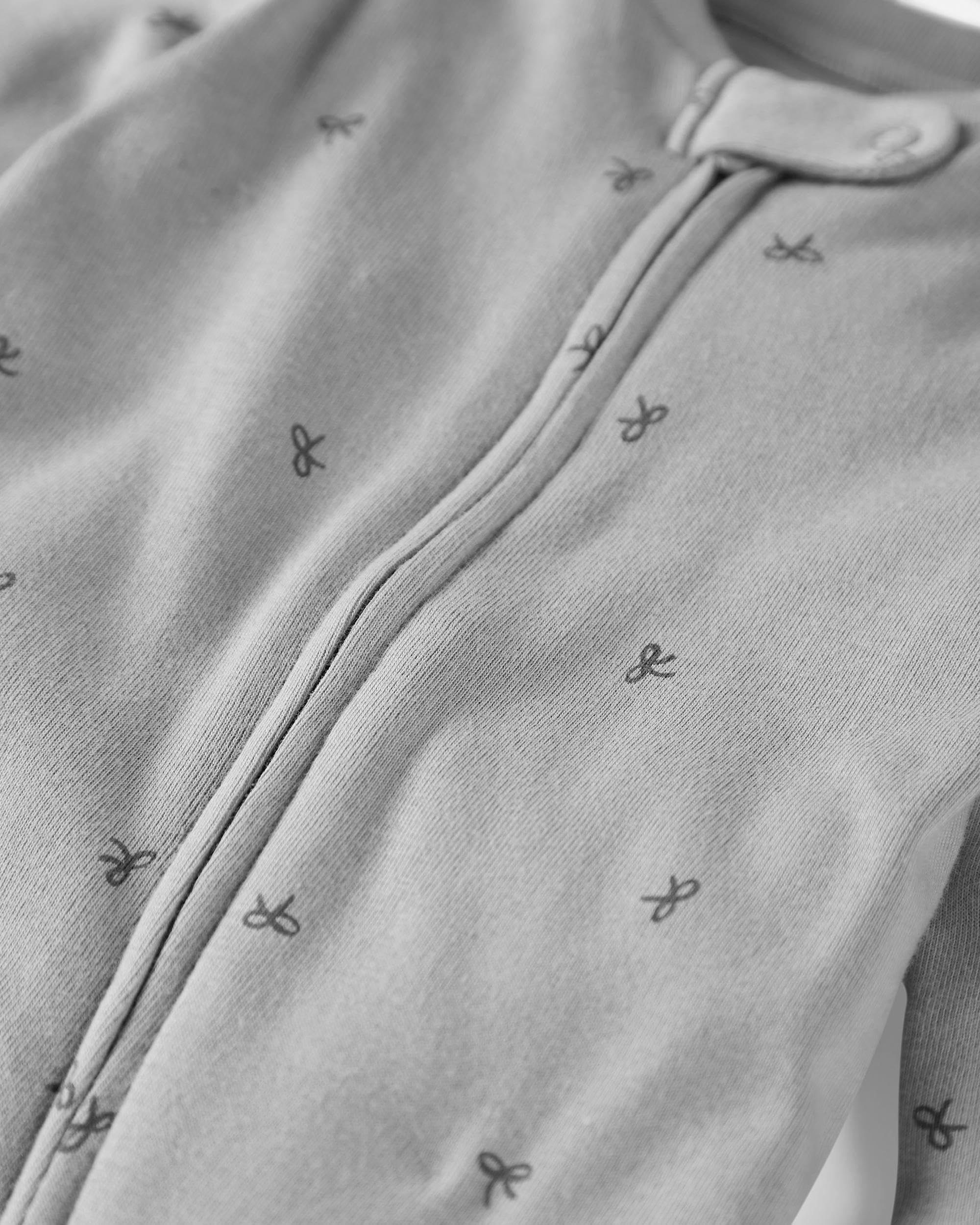 Description Cuddle baby up in this soft, certified organic cotton sleep & play. Made for daily adventures in tummy time, nap time and beyond, this piece is blooming with thoughtful details like a 2-way zipper to keep baby's arms & torso warm during diaper changes, plus built-in footies to keep tiny toes cozy. In our exclusive print, this one piece is wildly cute!
