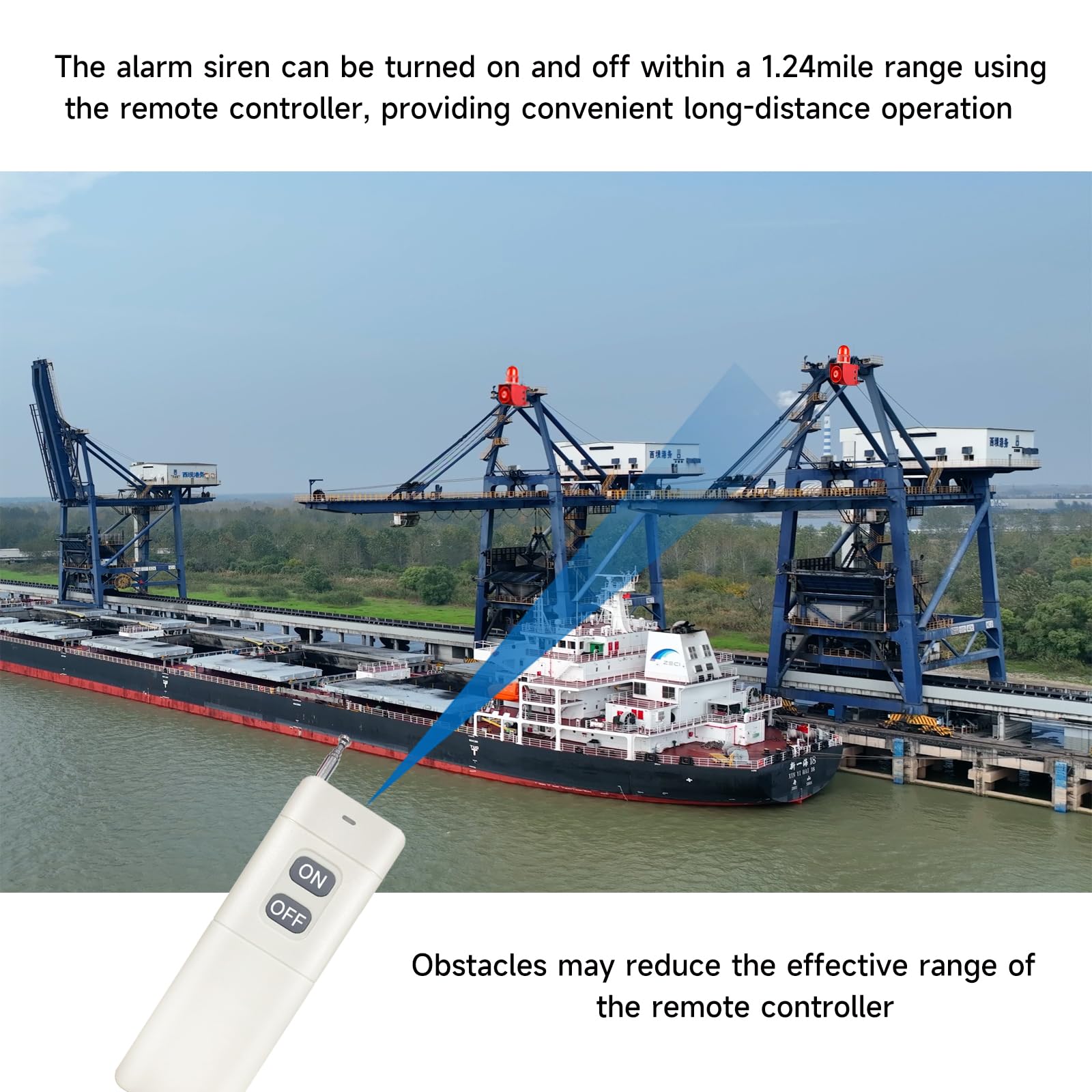 Outdoor Security Alarm System: The fire siren can be controlled remotely from up to 2000 meters away, making it suitable for large-area security needs. However, please note that obstacles may reduce the effective range of the remote control. Notes: the remote controller is powered by 9V battery(not included, need to purchase separately) and does not contain button or coin battery
