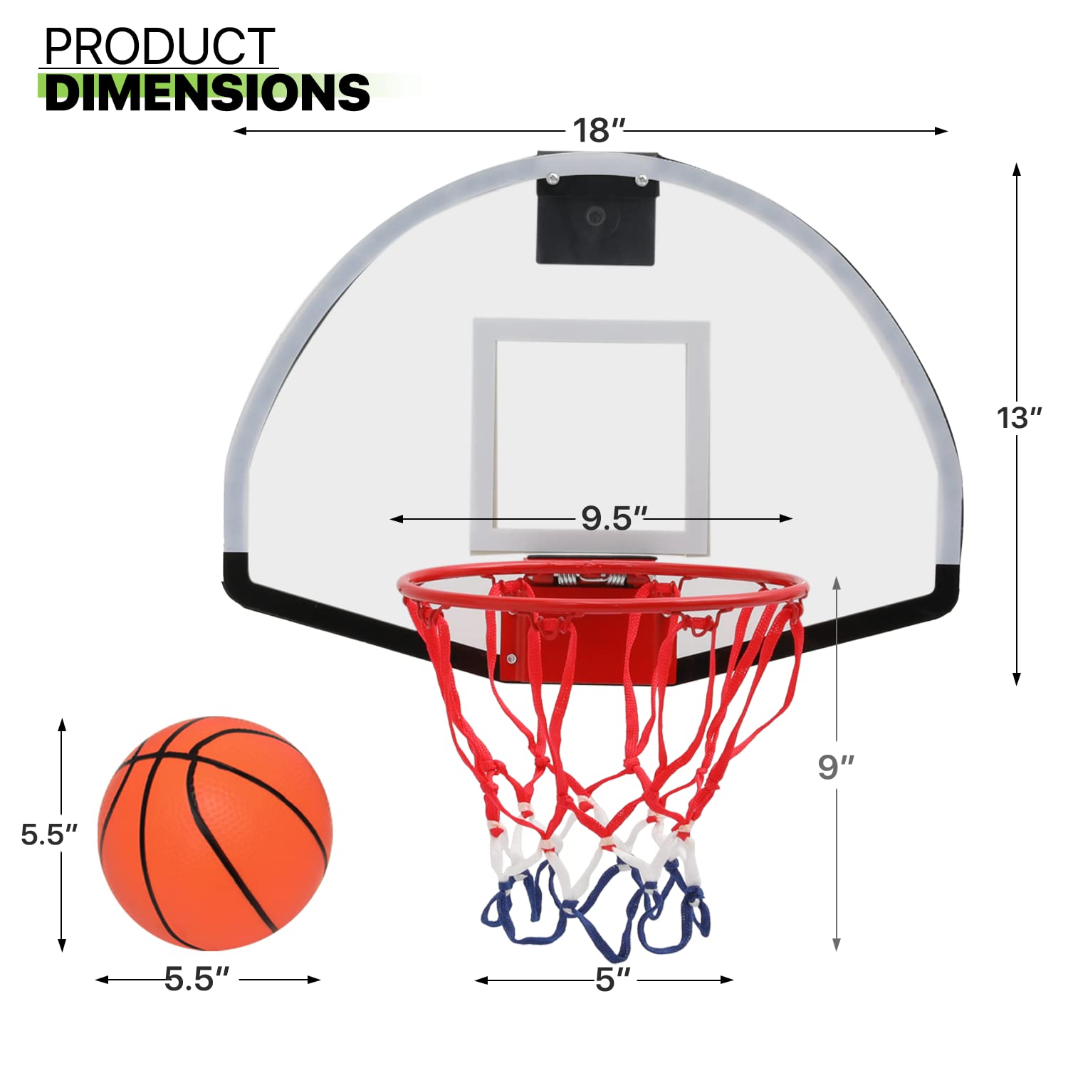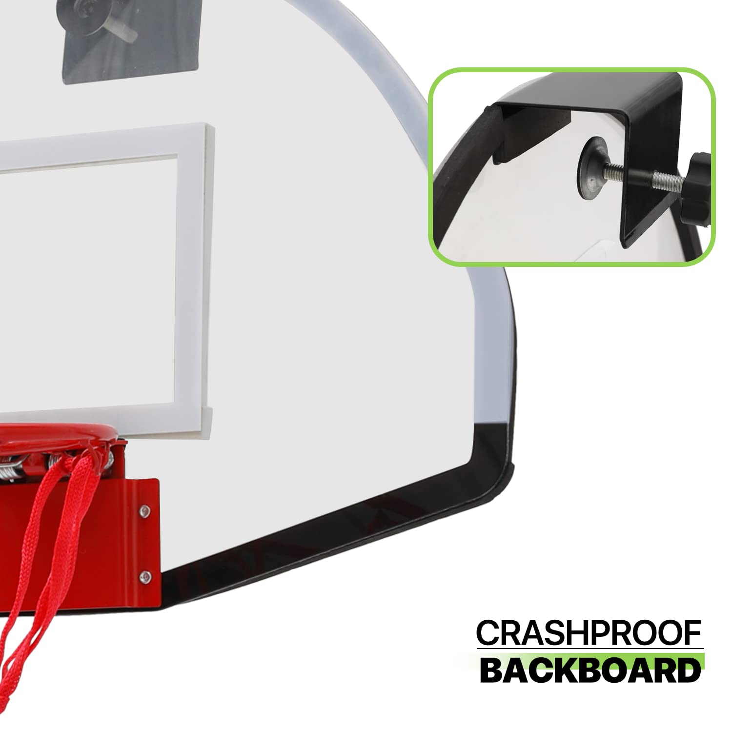 Durable Material - Our basketball backboard is made of a high quality clear polycarbonate, which is shatter resistant and robust. High performance protective foam padding on the backboard and brackets will minimize the noise on your door, office and living room.