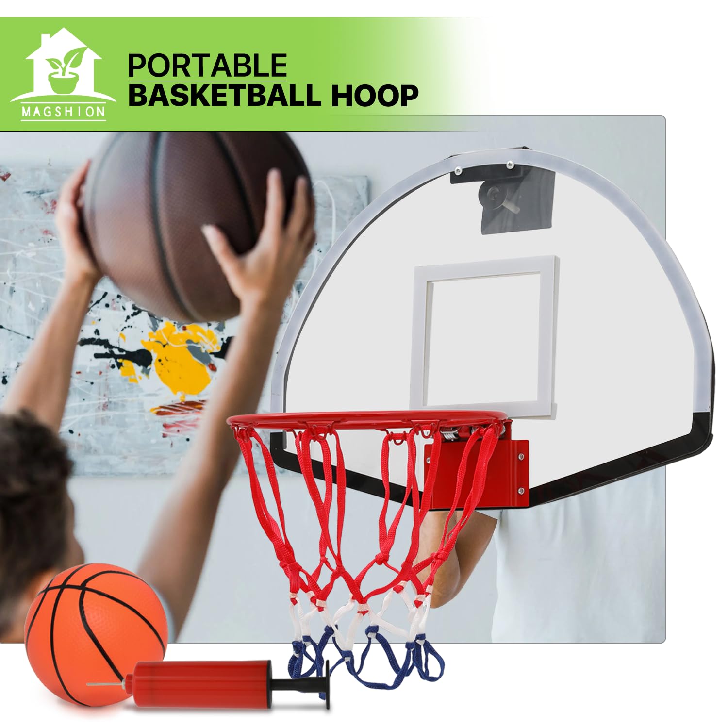 Easy To Install - This door mounted mini basketball hoop set can be easily hung on the door, no matter at home or office or mounted on the wall. Perfect detachable design greatly saves storage space and is easy to be assembled everywhere and portable to play outdoors.