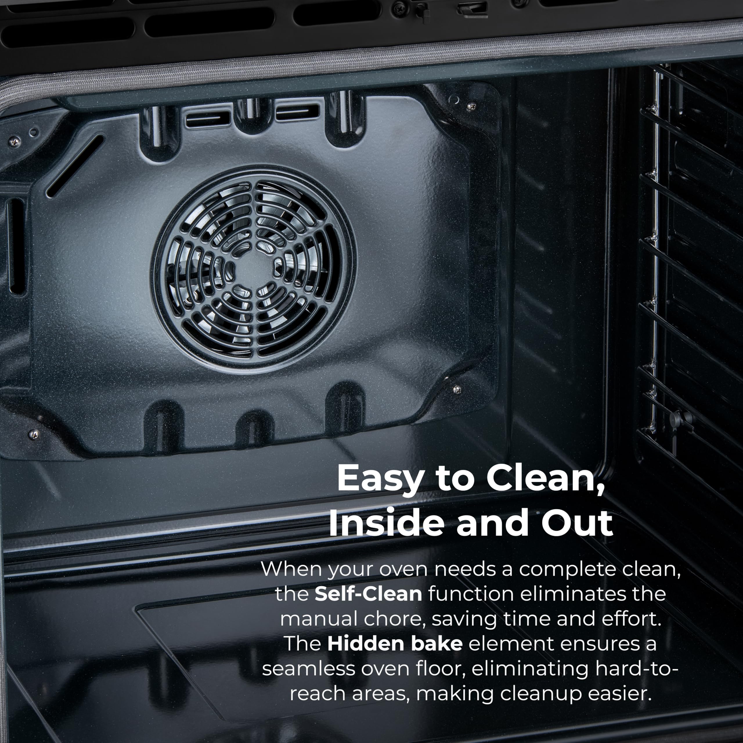 Easy Clean-Up & Maintenance: Self-clean oven, hidden bake element, and ultra-durable chrome racks mean effortless cleaning and reliable performance
