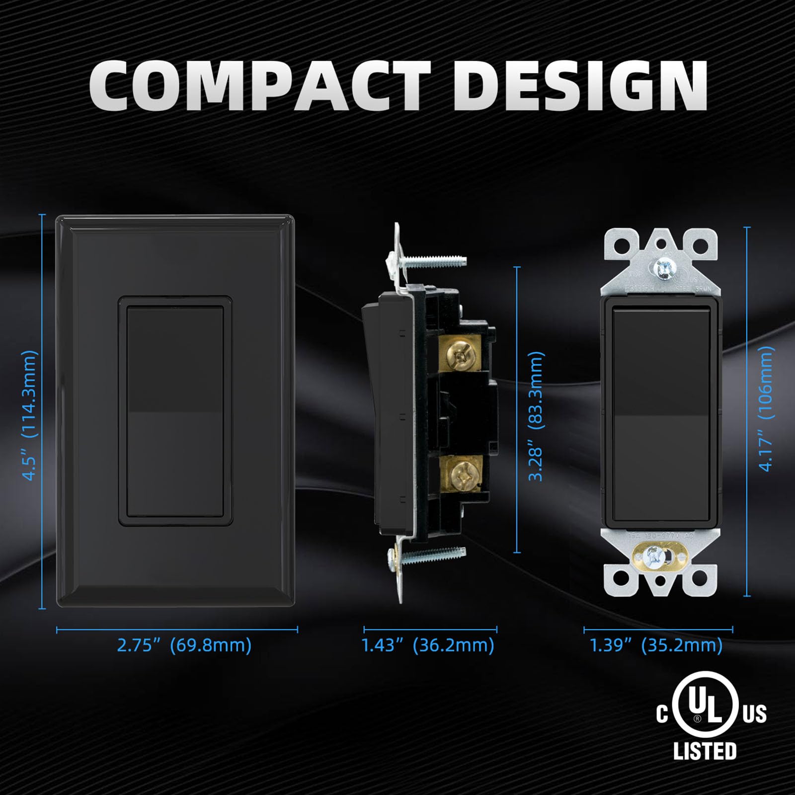 Universal Application: Suitable for residential use and most commercial areas that require only 15A switches. Repair or Replace old or broken rocker switches in your bedroom, kitchen or work space. UL & CUL listed.