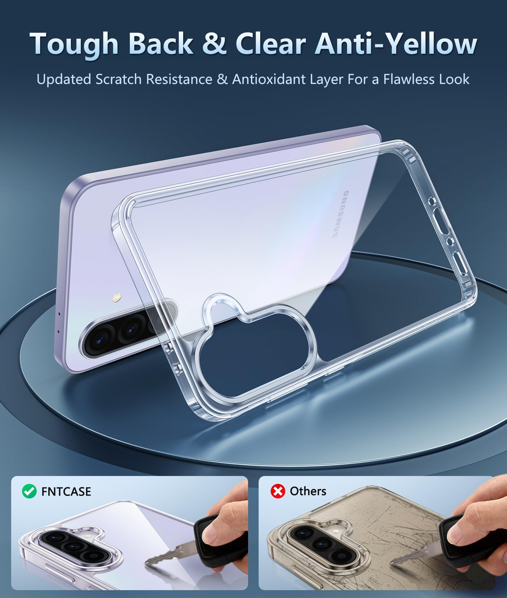 Crystal Clear & Never Yellow: Using high-grade Bayer's ultra-clear TPU and PC material, allowing you to admire the original sublime beauty for Samsung Galaxy A37/A36 5G while won't get oily when used. The Nano antioxidant layer effectively resists stains and sweat