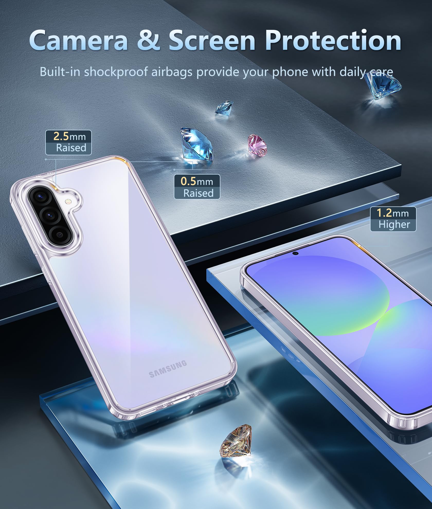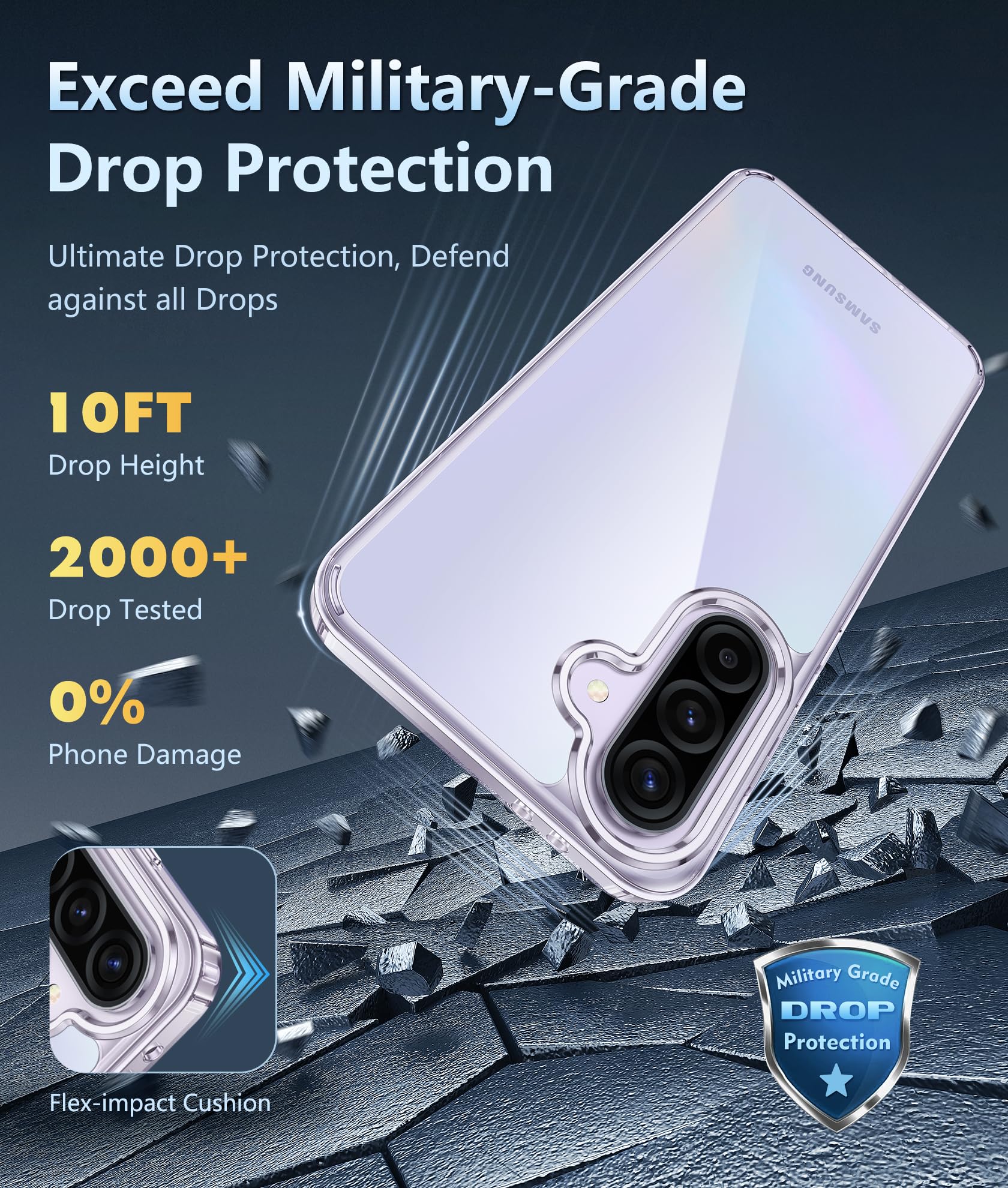 10FT Military Grade Protection: Passed Military Drop Tested up to 10 FT. This Samsung Galaxy A37/A36 5G Case clear case backplane is made with rigid polycarbonate and flexible shockproof TPU bumpers around the edge and features 4 built-in corner Airbags to absorb impact