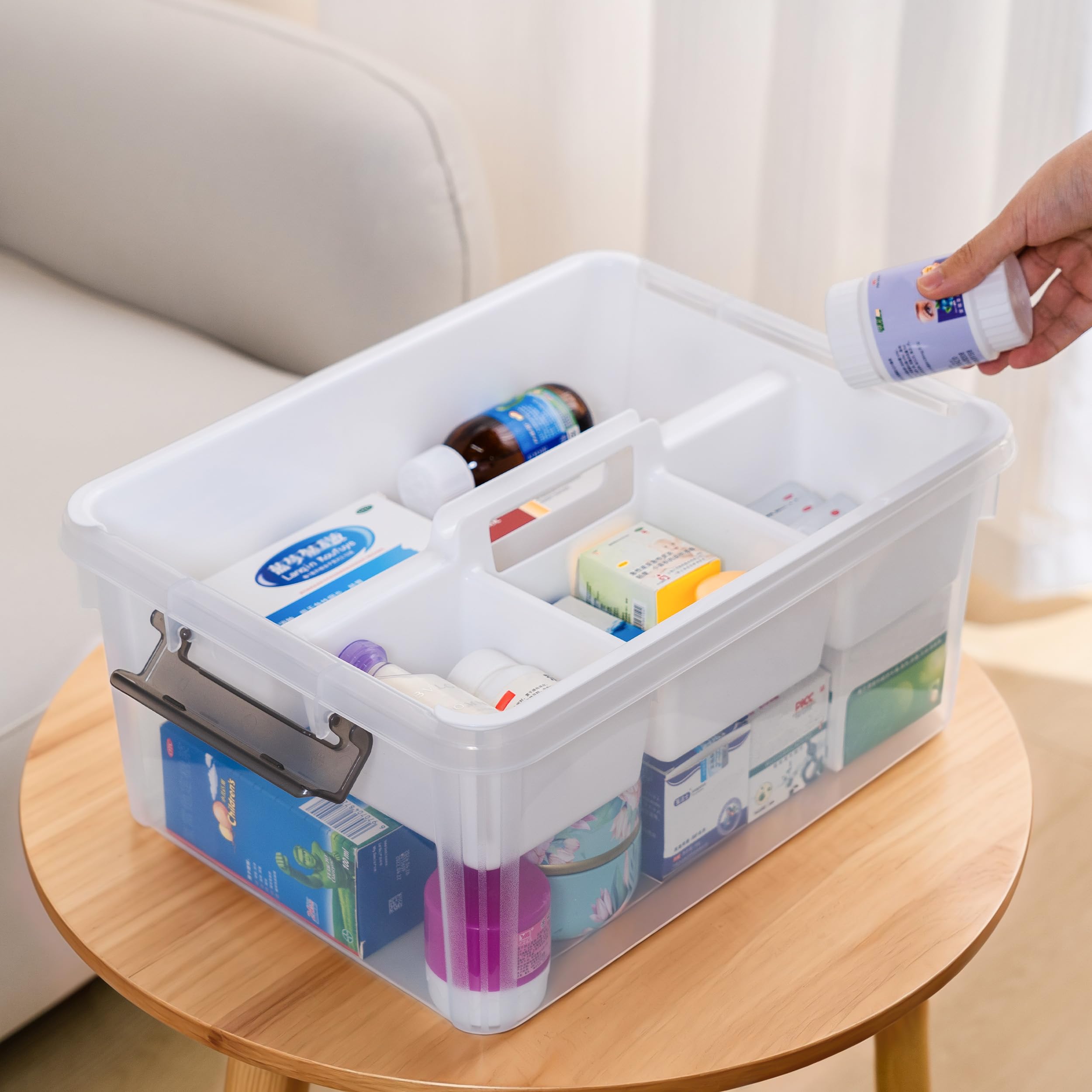 【Highly Transparent 】The high transparent base and cover allow you to easily identify the contents inside, so that you can store them quickly. The clasp on the lid makes it easy to carry and effectively prevents the contents of the box from being poured out;