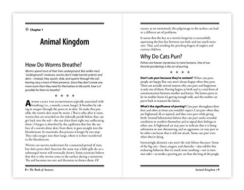 This mammoth 632 page book includes more than 325 answers to questions, both great and small, about which you have always wondered! Covers a wide range of topics, including the animals, health, culture, history, places, unsolved mysteries, sports, people, crime, food, and more. Wittily answers provocative questions. Sample questions include: What makes a firefly's butt glow? Does sound travel quicker through water or air? Why is a marathon 26.2 miles? Who betrayed Anne Frank? What's the difference between Cajun and Creole? Was there a real Pied Piper? Did someone else write Shakespeare's plays? How short was Napoleon? Hardcover book. This massive collection will inform and entertain curious readers hours and hours!