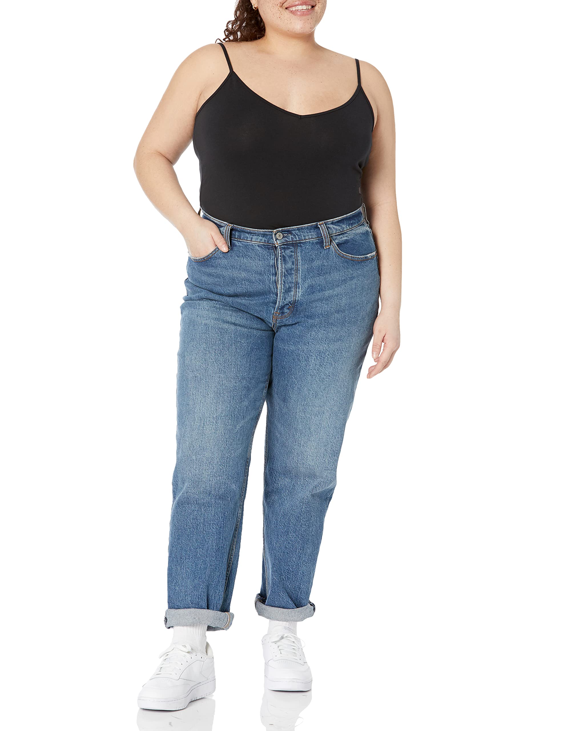 DETAILS: Features a classic v-neck and adjustable elastic cami straps for custom fit.