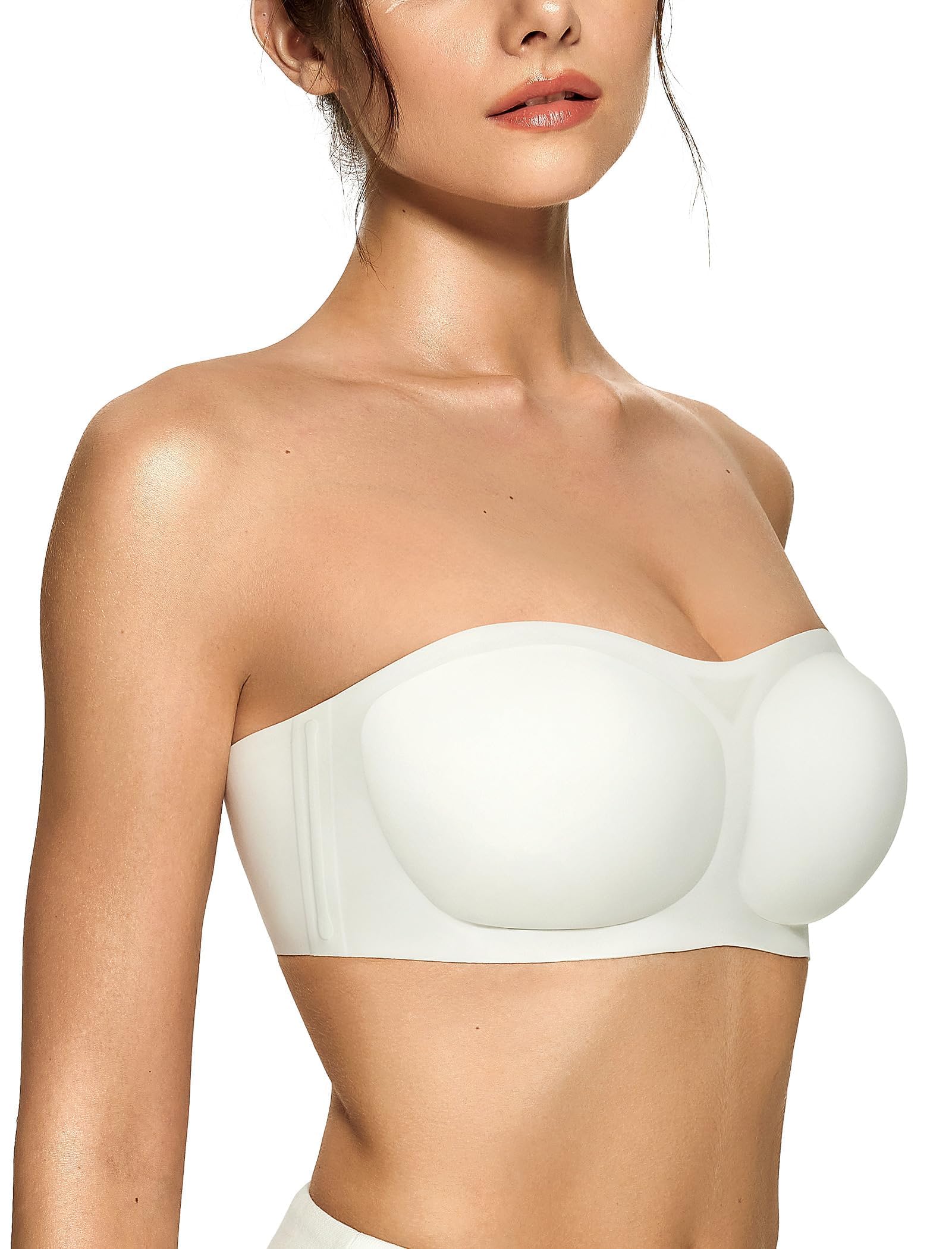 Non-Slip Bandeau Bras with Silicone - The OEAK strapless bra with a thin triangular grid of anti-slip silica gel ensures your breasts stay securely in place all day and frees your shoulders. With memory cartilage on the side, it effectively supports your breasts, allowing you to move with confidence.