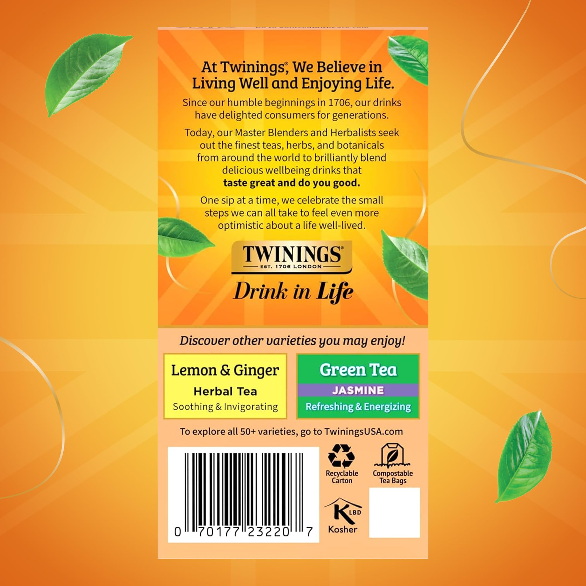 INDIVIDUALLY SEALED TEA BAGS STAY FRESH: Take your tea on the go in your purse, workout bag, backpack, school or work desk or car; Each tea bag is sealed for freshness so every cup of Twinings is the perfect cup of Twinings