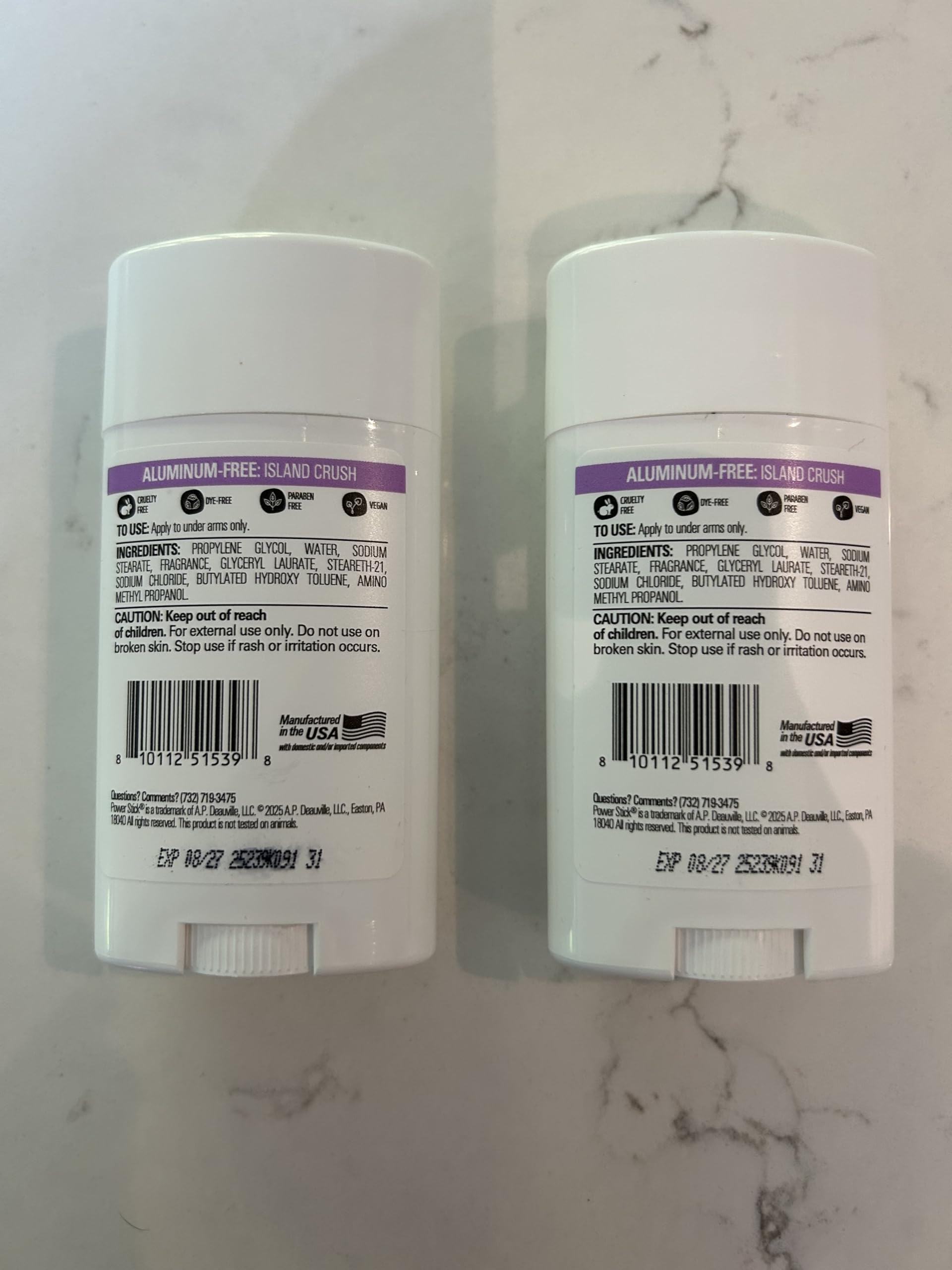 Power Stick Island Crush, Aluminum Free Deoderant for Her, Limited Edition, Sent: Pink dragonfruit Hibiscus and sheer vanilla, vegan, Pack of 2, (2.25 oz each)