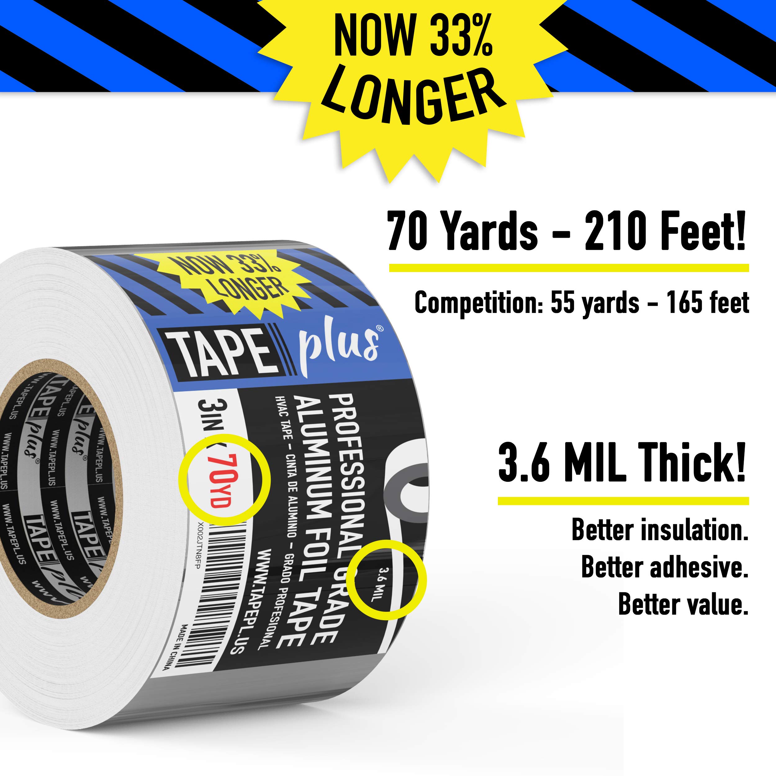 Premium Aluminum Tape: TapePlus offers a professional-grade aluminum foil tape renowned for its durability and versatility in HVAC duct insulation and home improvement projects. This heat-resistant and waterproof tape excels in sealing, patching, and pipe insulation tasks
