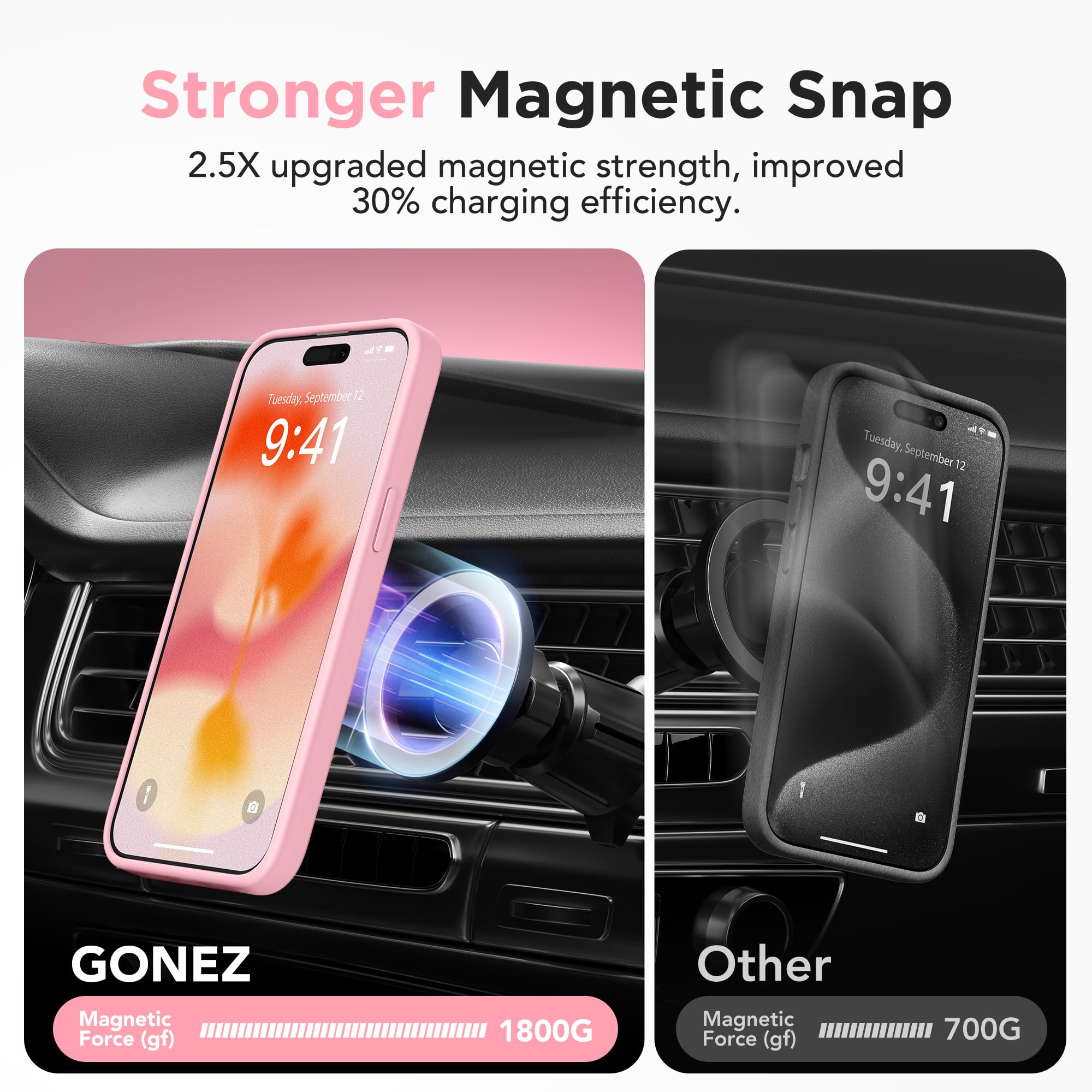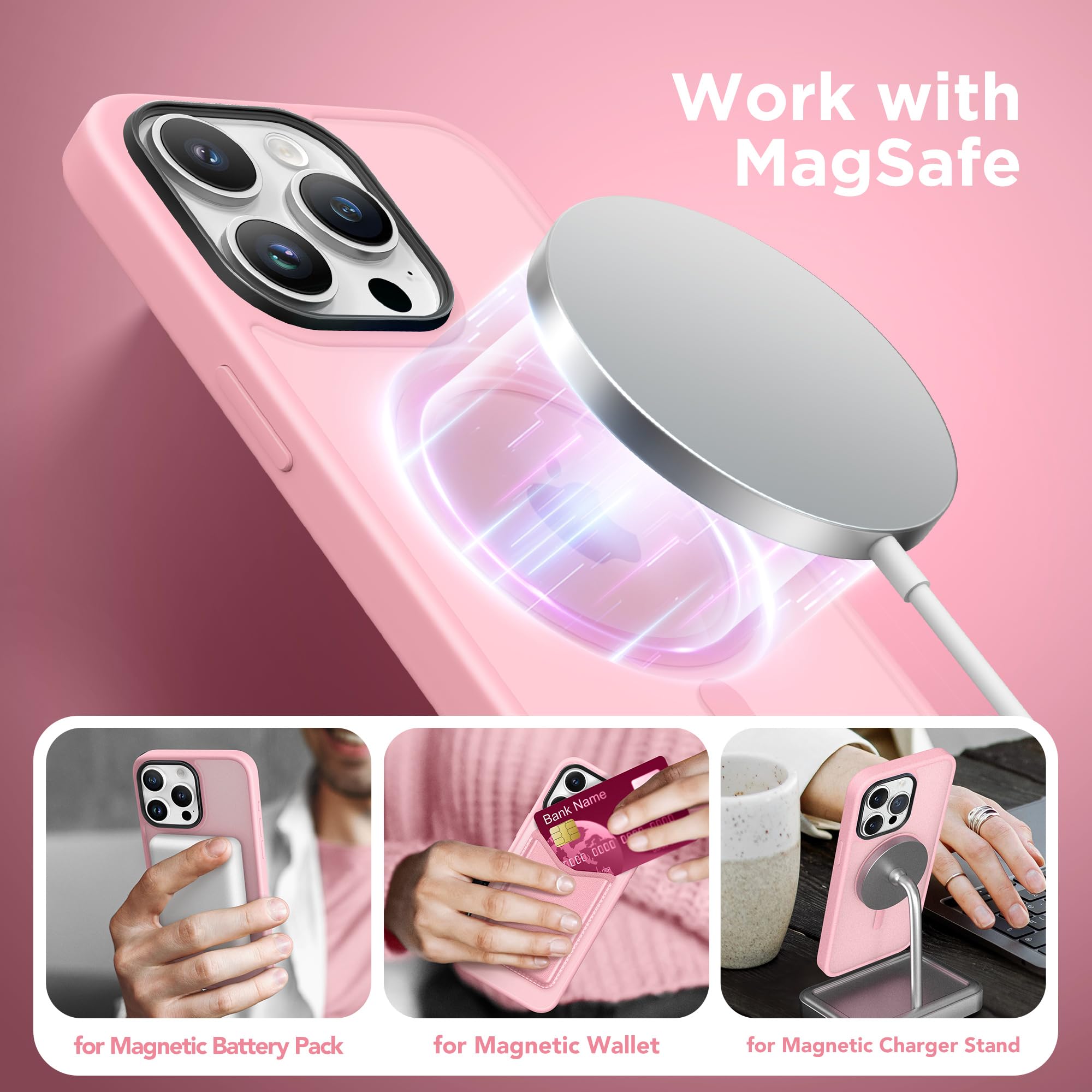 【Compatible with MagSafe】This iPhone 15 pro max phone case has a built-in magnetic ring. 48 strong N52 magnets are evenly distributed, magnetic strength is 4X stronger than other case. It can be perfectly and safely aligned with Mag Safe and other QI-certified chargers to achieve safe and fast wireless charging. It can be firmly and securely connected to all Mag Safe accessories, such as magnetic wallet, charger, battery pack, car mount, and will not fall off no matter how rotated or shaken.