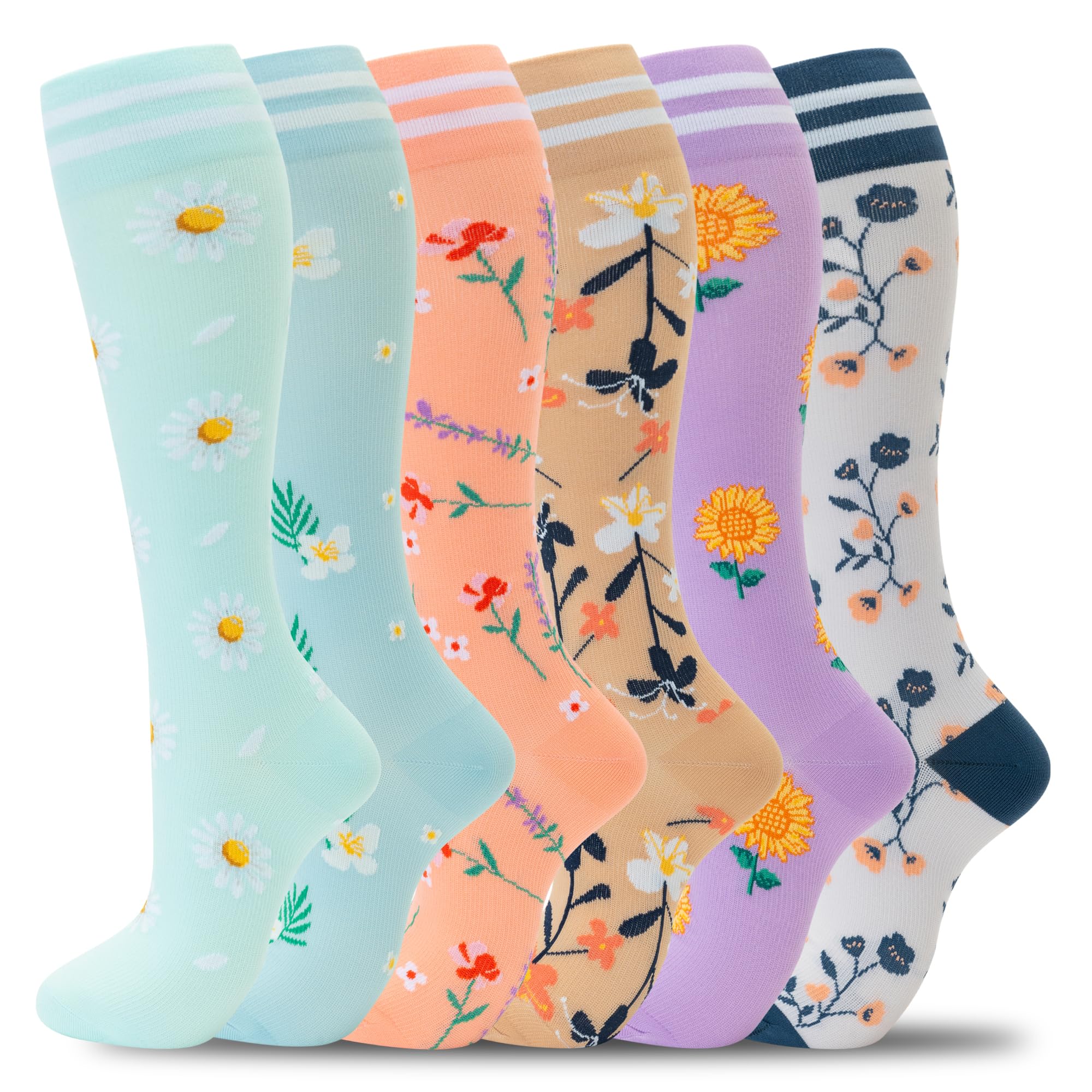 KNEE HIGH SOCKS Bored with terribly samey socks? Donβt worry. We prepare a wide variety of cute compression socks for women. The colorful compression socks are carefully designed and the pattern design is very distinctive, The toe and heel portions are reinforced for added support and comfort. Just pick your favorite one from these fun compression socks to show your personality and style