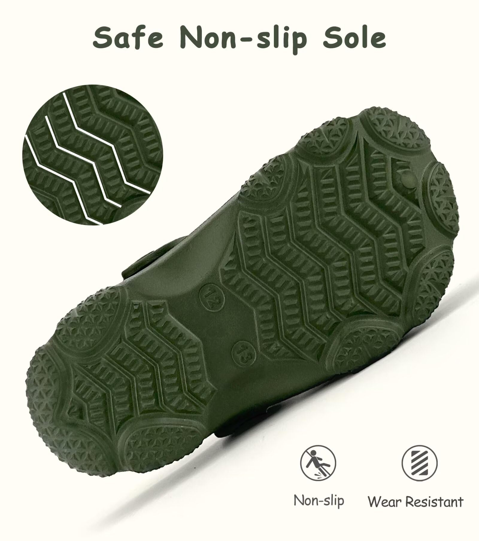 Non Slip Clogs: Non-slip sole texture and midsole non-slip particle design, allowing children to step on water confidently. Perfect for adventurous boys/girls exploring the world.