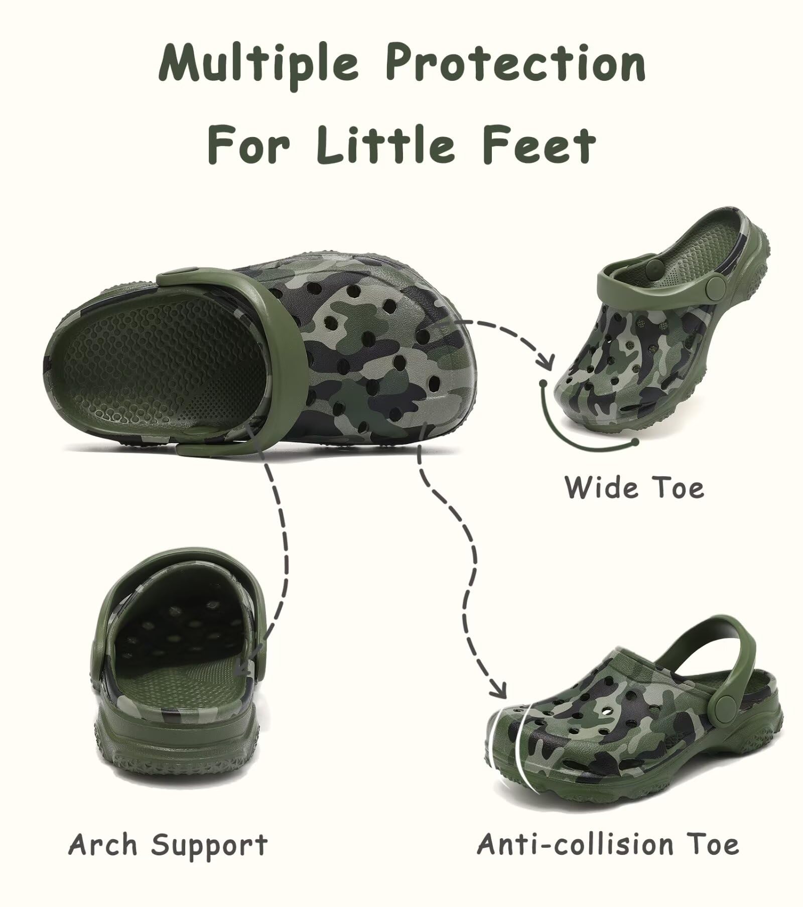 Stylish Appearance: We offer a variety of style for you to choose from: tie dye, camo, spider, high shine, rainbow. Step out in style with kids clogs that effortlessly blend fashion with comfort.