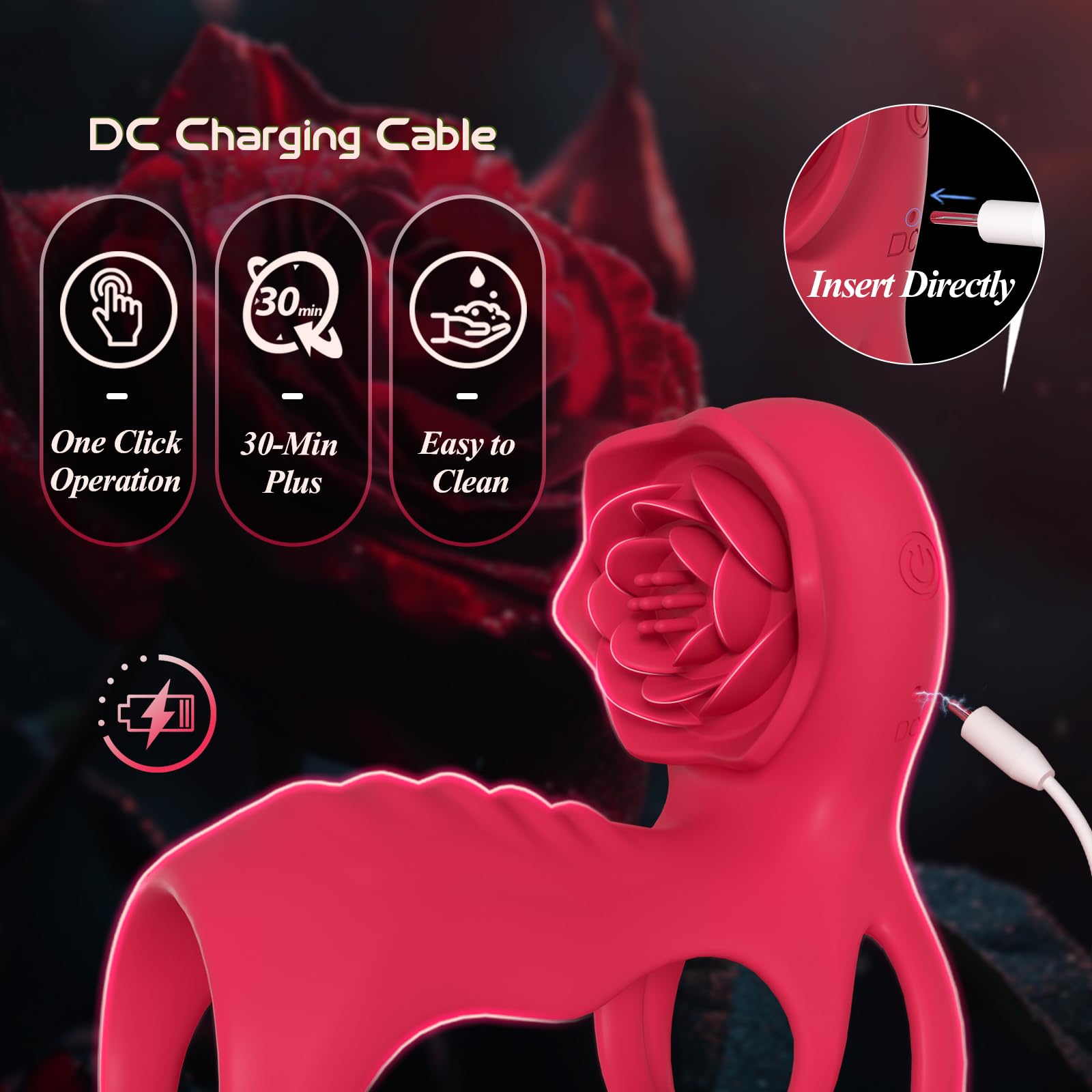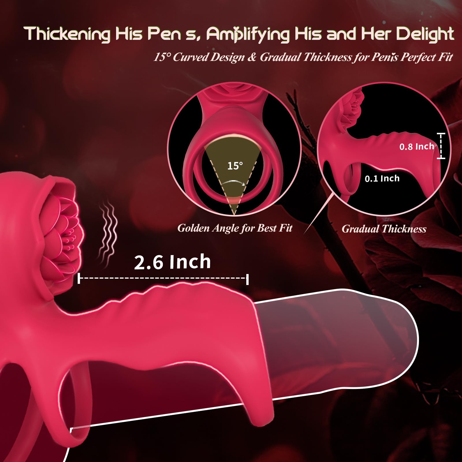 All-in-One Pleasure System for Two: A single design that does it all: the rings hold him steady, the thickened sleeve amplifies his size, and the rose toy teases her sensitive spots inside and out. Together they create a full-body connection, no extra toys needed—just one piece, endless ways to play