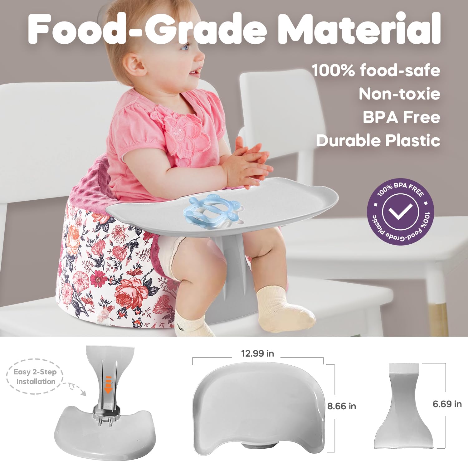 【Convenient Feeding and Play with Bumbo Tray】Easily attach the tray accessory to the Bumbo Floor Seat, providing a dedicated space for baby to enjoy meals or playtime.Enhance your Bumbo Baby Seat with this perfect add-on, creating a clean, stable surface for feeding and play, keeping toys and food within easy reach.