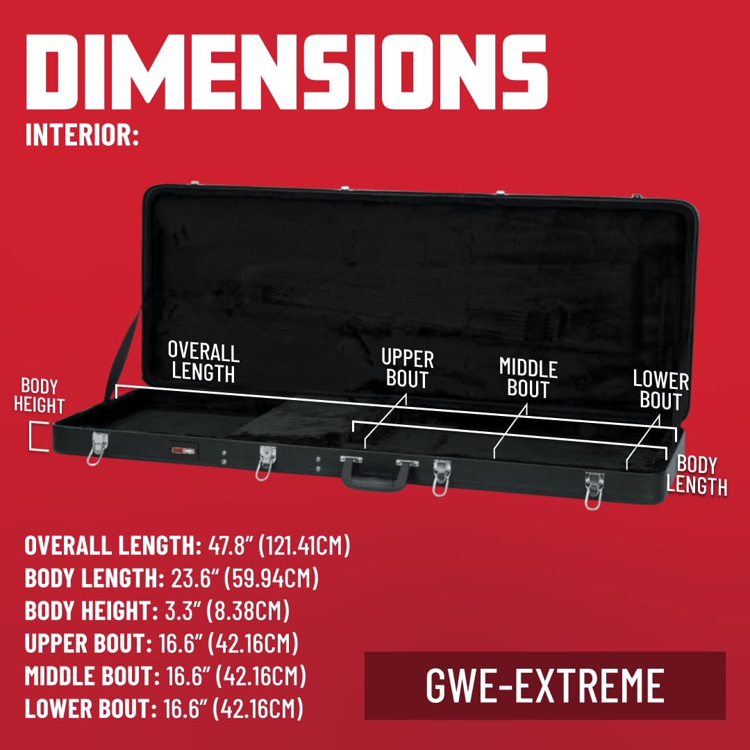Fits Gibson Flying V, Explorer and various odd-shaped guitars. Interior Dims: Body Length: 23.6" Body Height: 3.3" Lower Bout Width: 16.6" Middle Bout Width: 16.6" Upper Bout Width: 16.6" Overall Length 47.8"