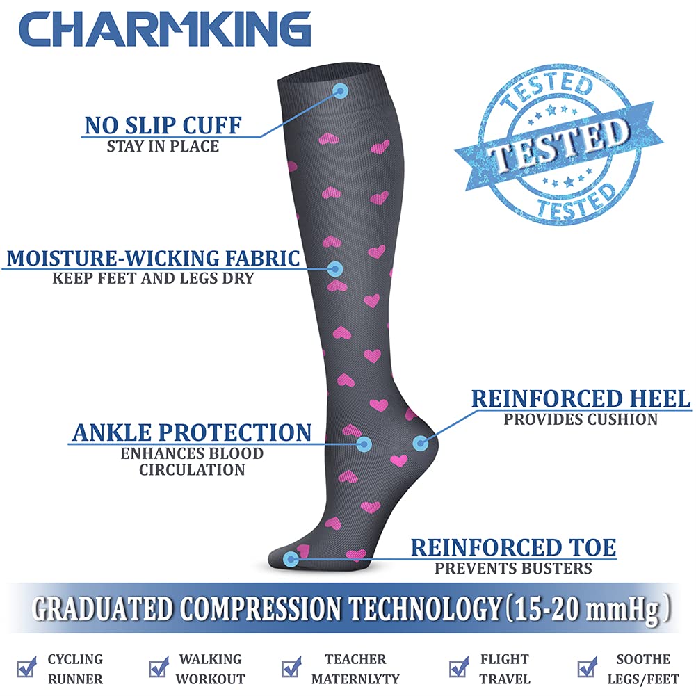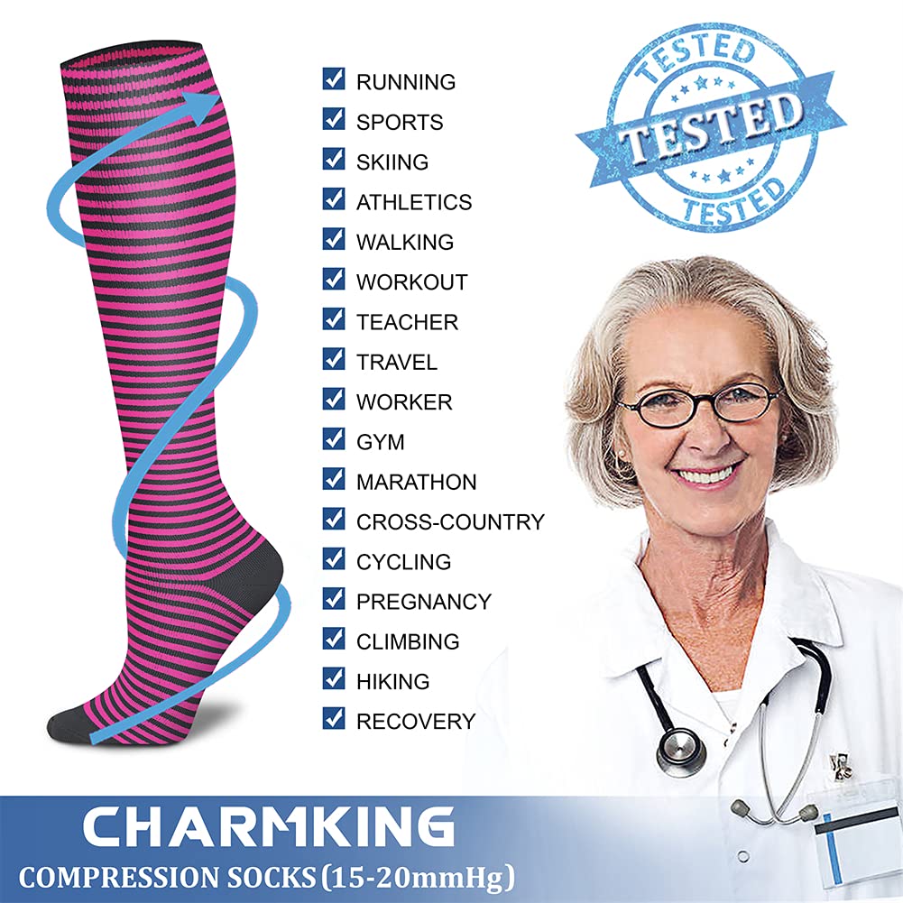 COMPRESSION SOCKS - We intend combining fashion, technology and science to bring you the triple comfort without. The material of our compression socks are upgraded with nylon percentage from 40% to 85%. Delivers 360-degree stretch for greater flexibility and durability. Breathable high performance fabric keeps an optimal temperature.