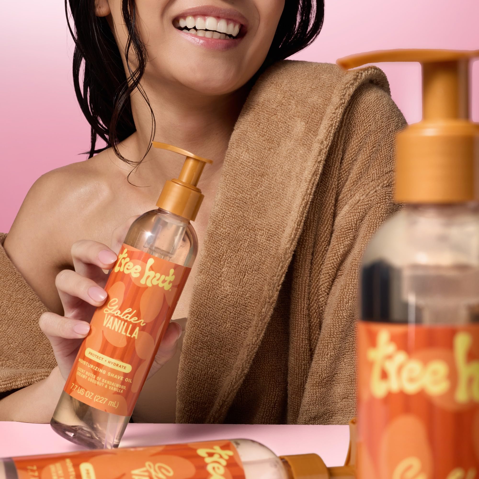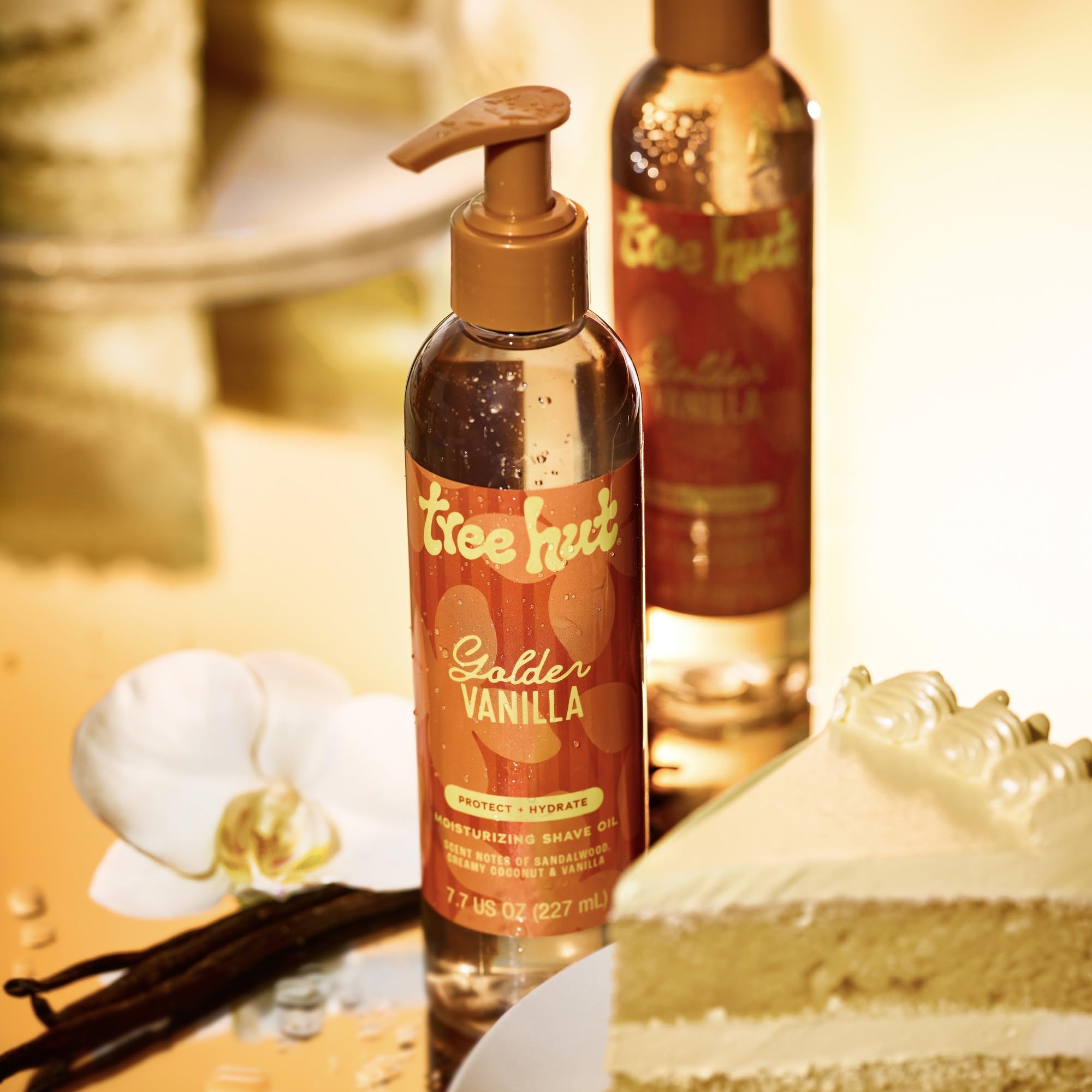 Say goodbye to stubble, nicks and razor bumps with Tree Hut Golden Vanilla Moisturizing Shave Oil. This gel-to-oil formula helps you achieve your closest, smoothest shave while deeply hydrating skin. Infused with Shea Butter and natural oils, it leaves your skin soft, moisturized and beautifully scented. Warm, creamy scent features notes of coconut, vanilla and soft sandalwood—like golden light on skin.