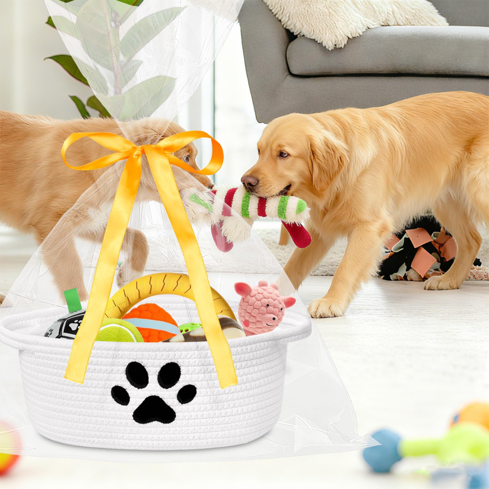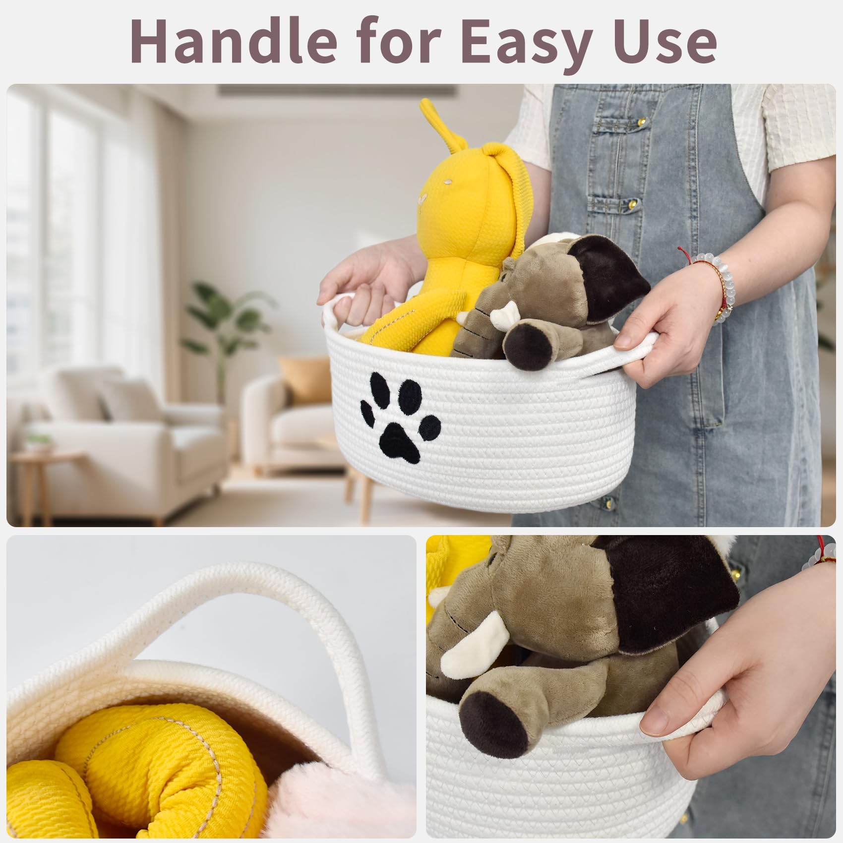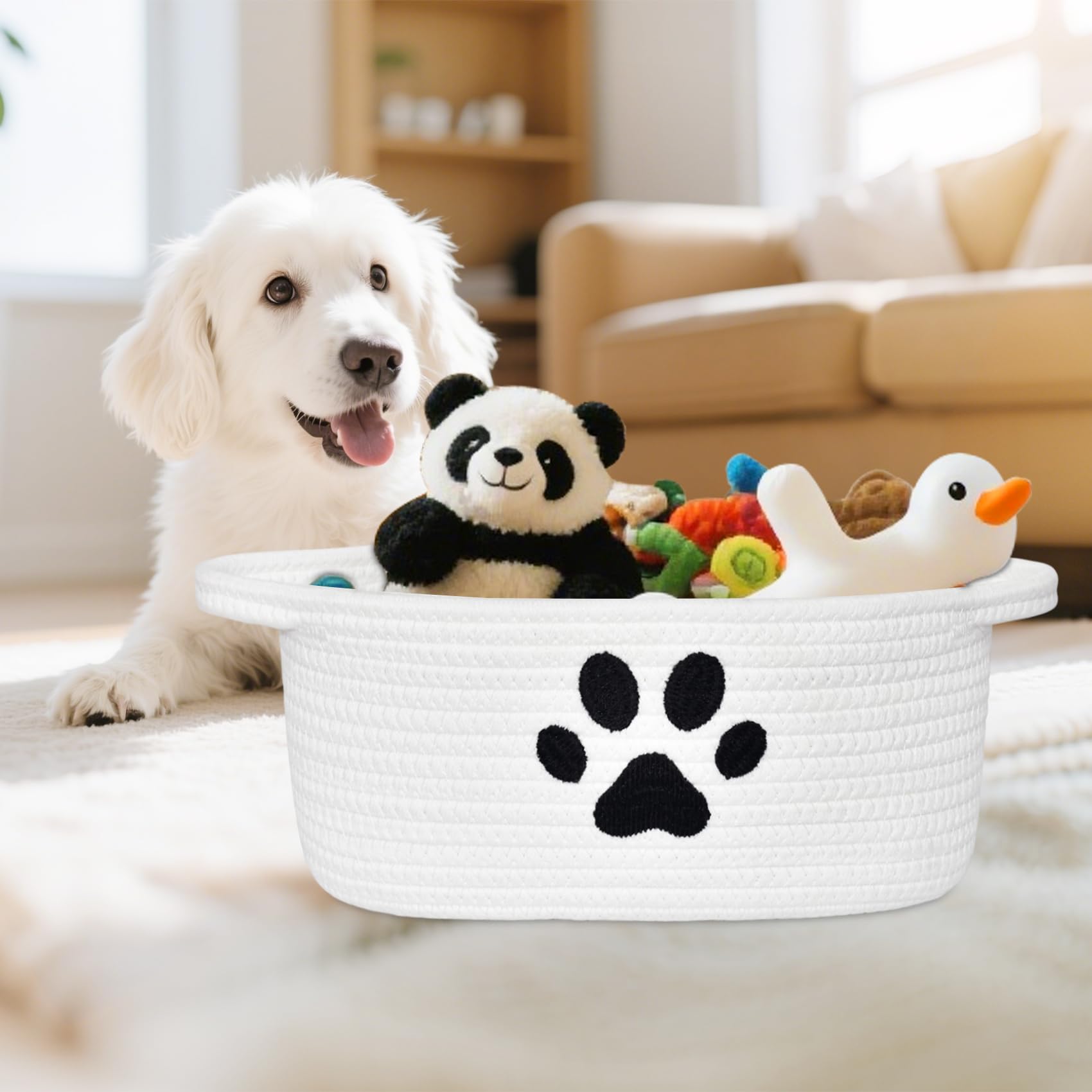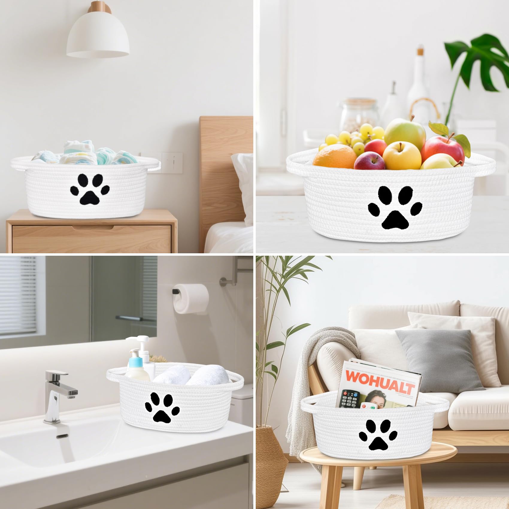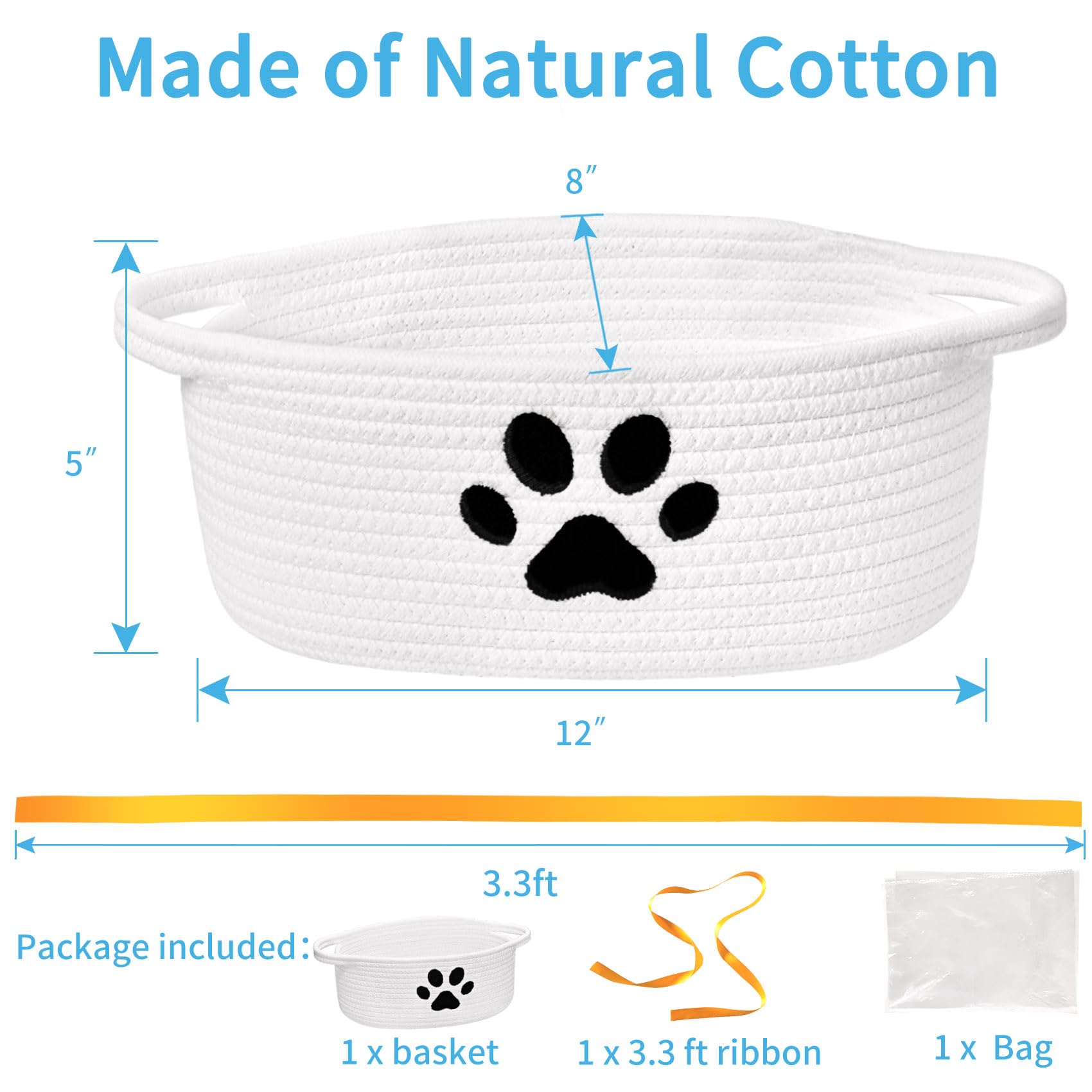 Small Basket: Measures 12 x 8 x 5 inches, unique with paw design on the basket, ideal for storage and gift presentation. Small storage basket keep things organized and provide an adorning modern look