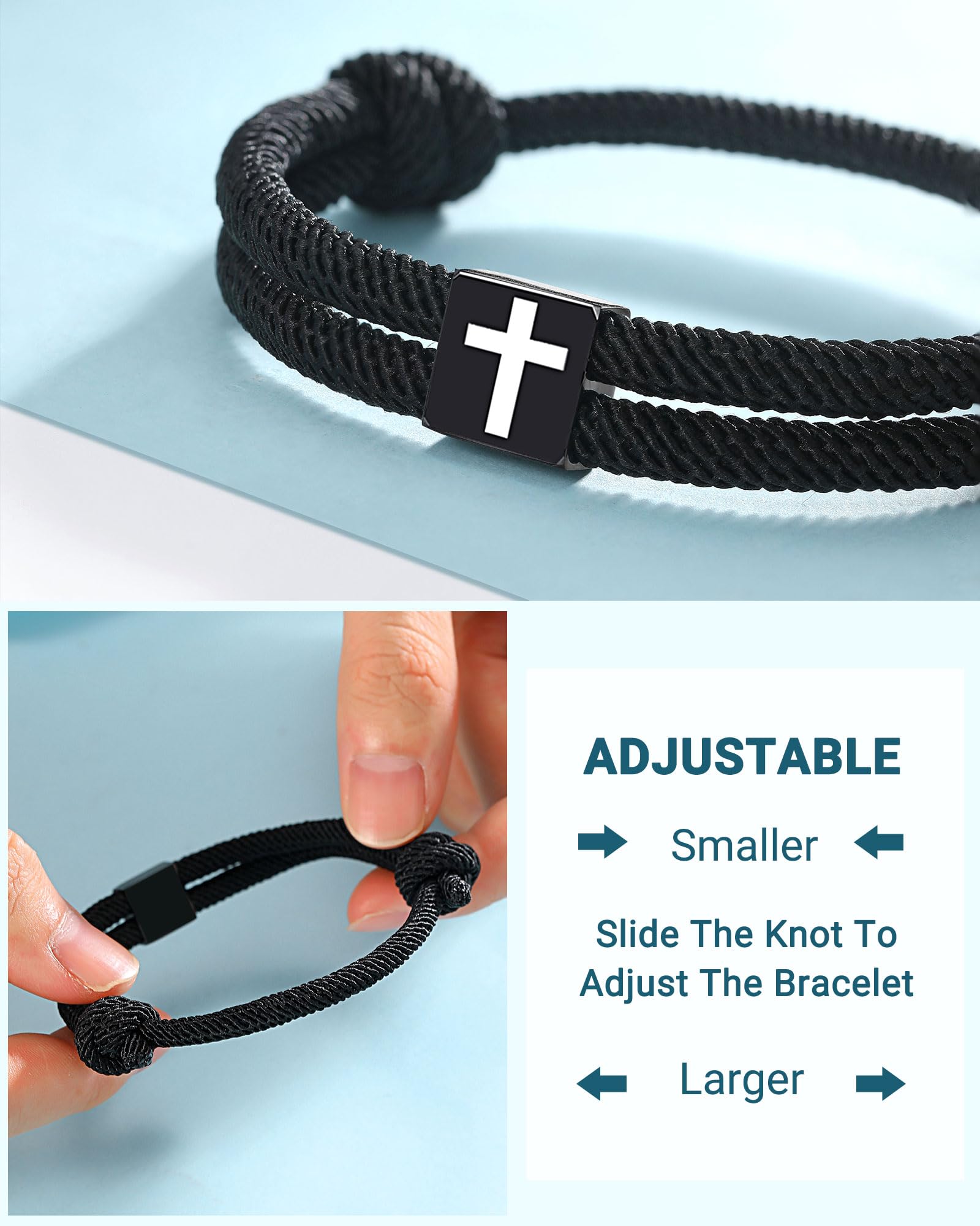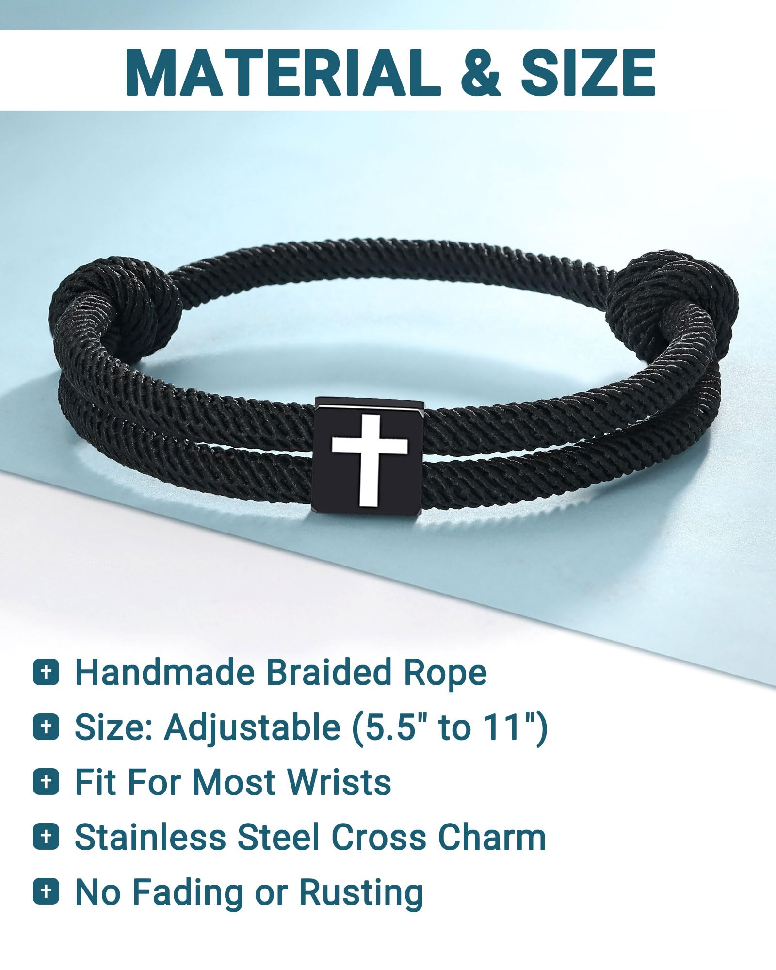 【Stylish Bracelet】Made with a braided rope and a simple cross charm, this bracelet is strong and sturdy. It is comfortable to wear and not easy to break.