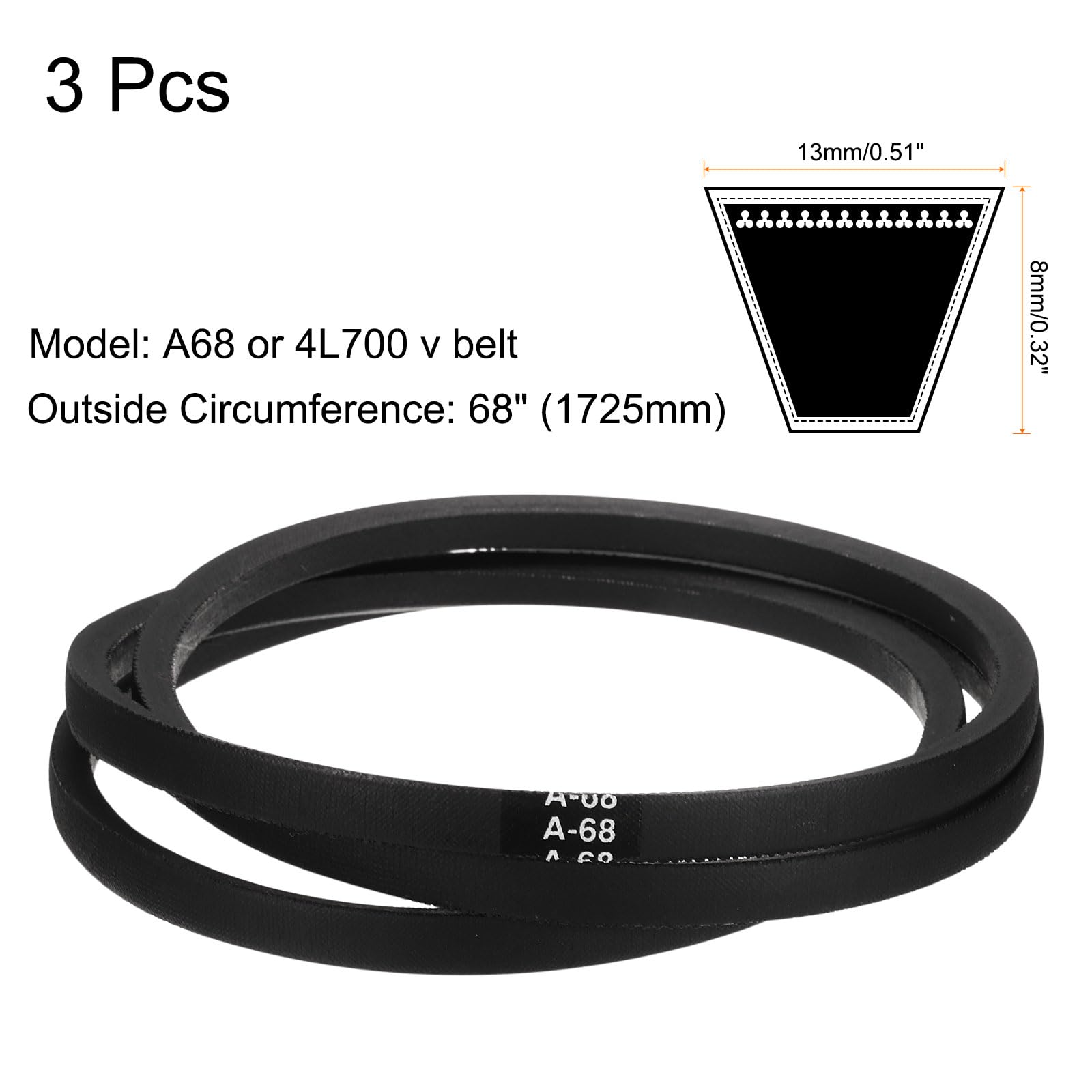 Model: A68 or 4L700 v belt. Inner Circumference: 68" (1725mm); Outside Circumference: 70" (1775mm).