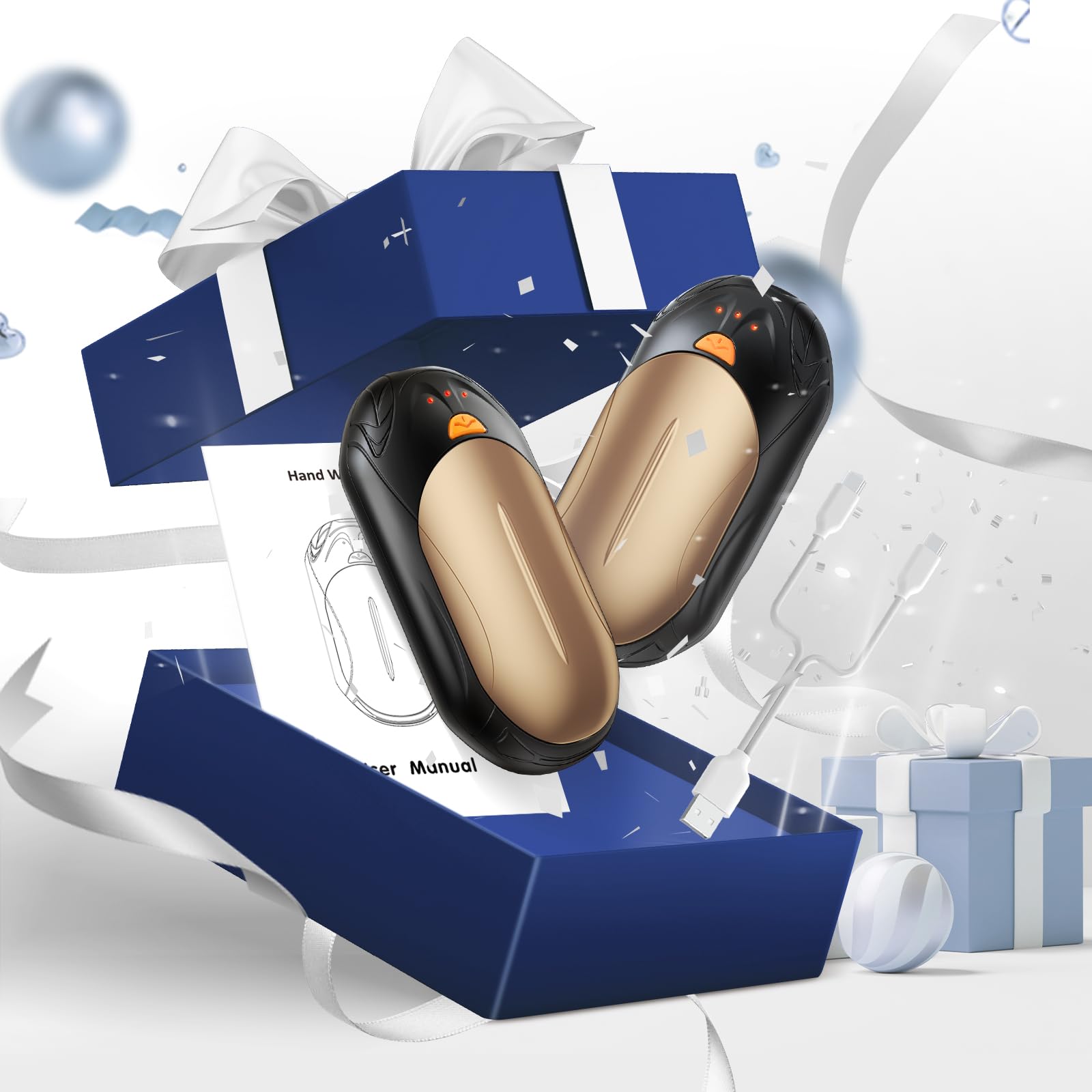 AI Hand Warmers Rechargeable 2 Pack, 6000mAh Electric Hand Warmers, AI Smart Chips 20Hrs Long Safe Heat, Portable Pocket Heater, Gifts for Christmas, Outdoor, Golf, Hunting, Camping Accessories-Bronze