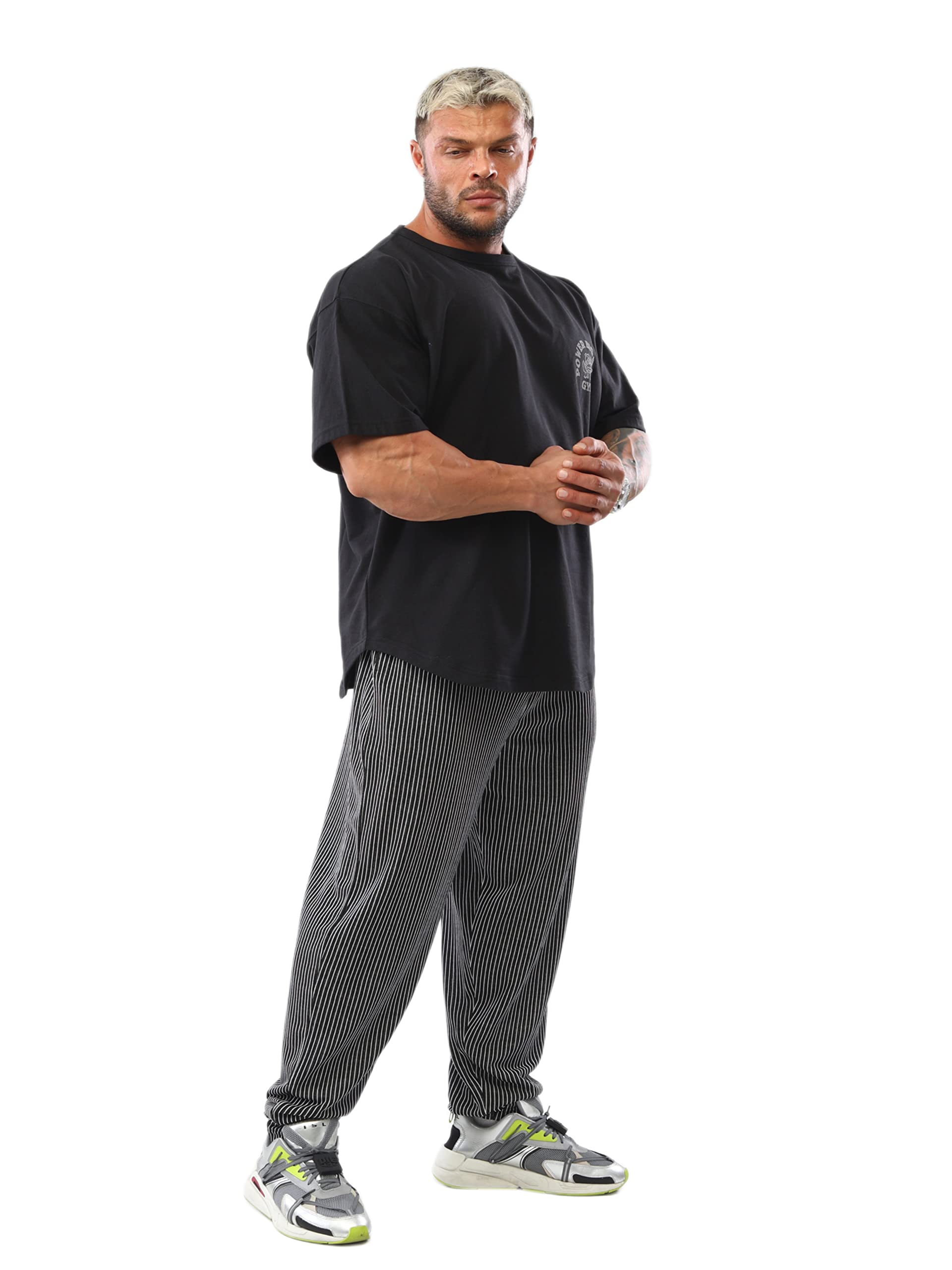 Cut Style & Form ➢ These sweatpants are produced with a wider cut than normal sweatpants. It is produced for large and muscular body types with its wide leg and hip cut. Wide hip and leg cuts taper downwards. The trousers that look draped in thin body types will be regular in muscular or large body types.