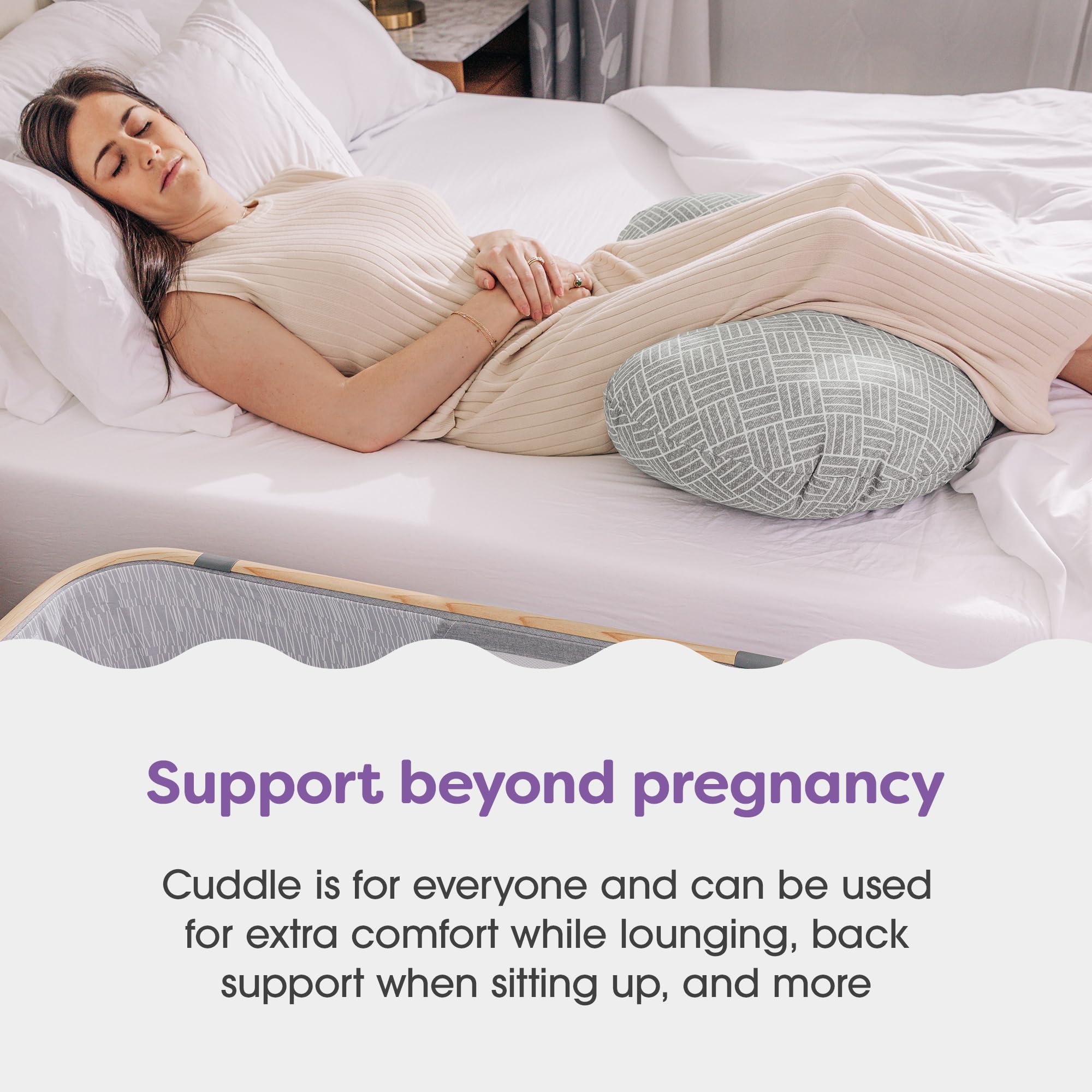 Comfy where it counts: Versatile Cuddle pillow conforms to your body, aligning your head and neck, baby bump and legs or back and legs pre- and post-birth; The Cuddle Pillow can also be used as a side sleeper pillow between legs for hip alignment to ease discomfort