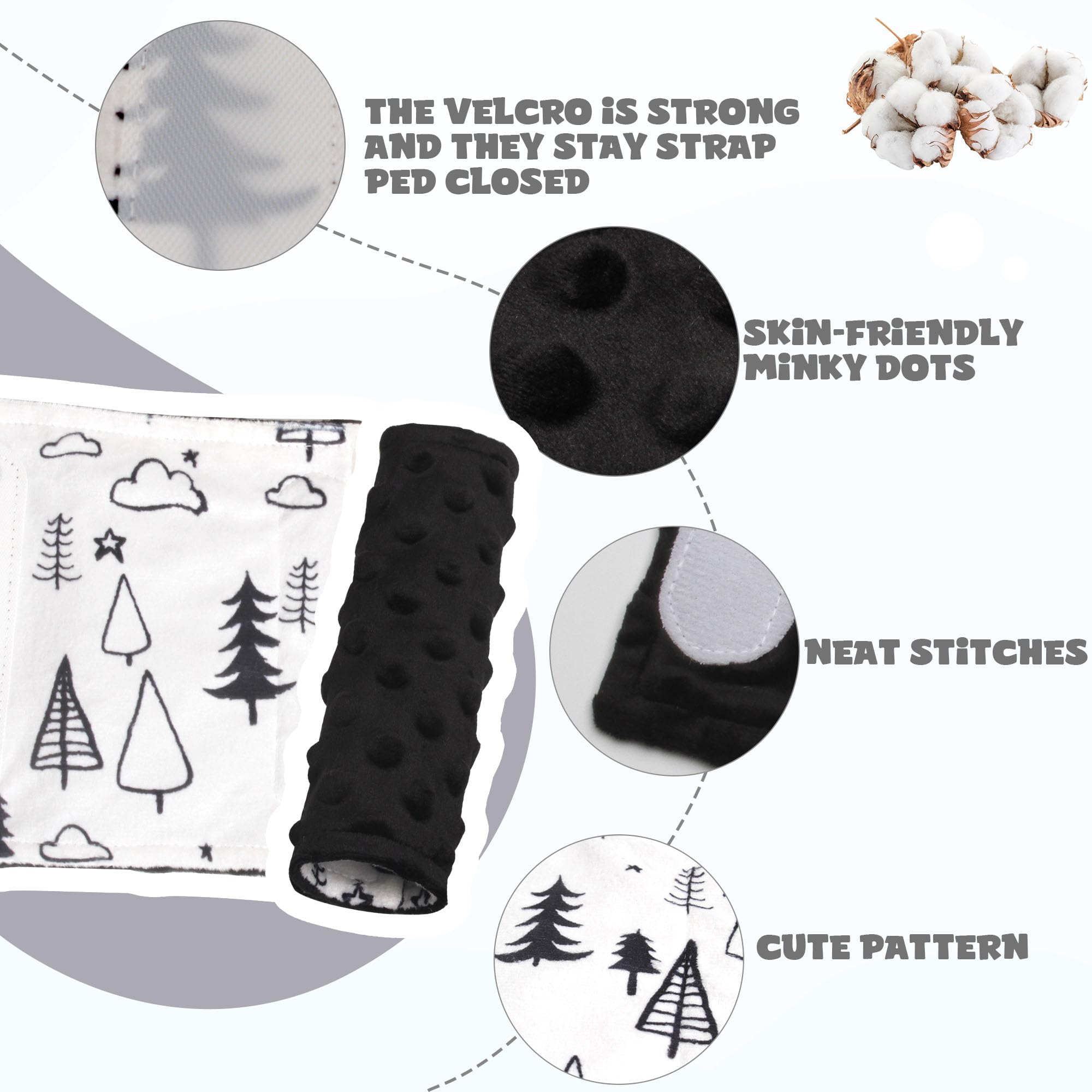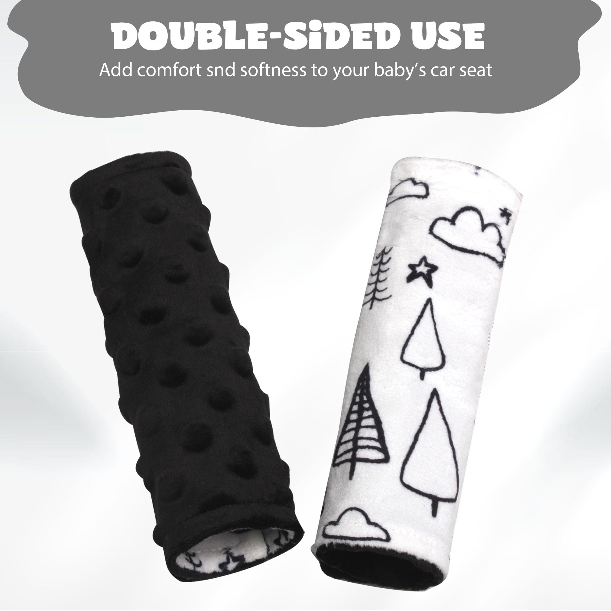 Soft and Cushiony: - Super soft on both sides of the car seat strap covers. Soft, pretty velvet on one side and minky dots on the other side! Added comfort snd softness to the car seat. No more red cut marks from seat belts!