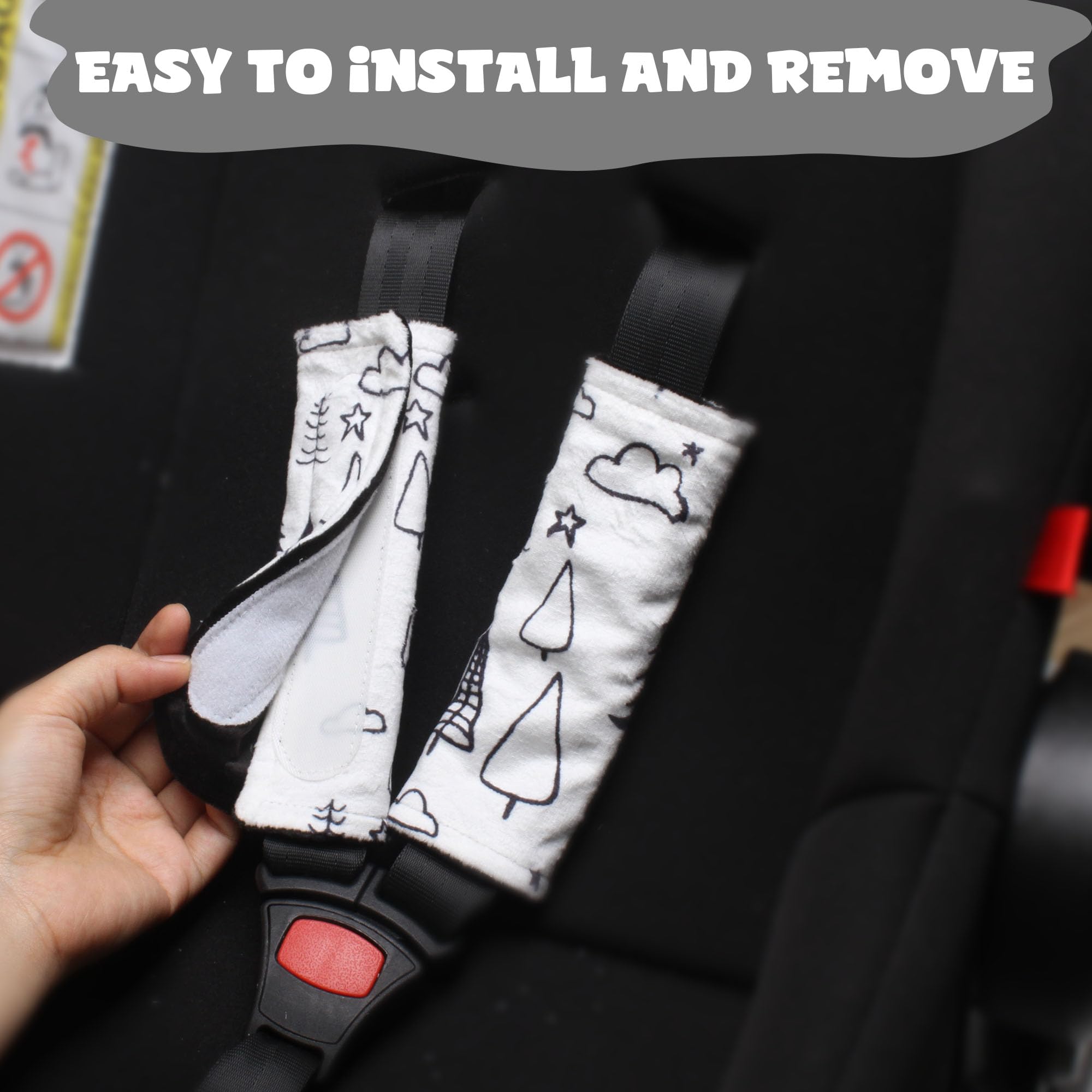 Easy to Install and Adjust: - Boryokun carseat strap covers for the seatbelt are very easy to stick at the interface. They are easy to put on the carseat straps without having to undo the straps from.