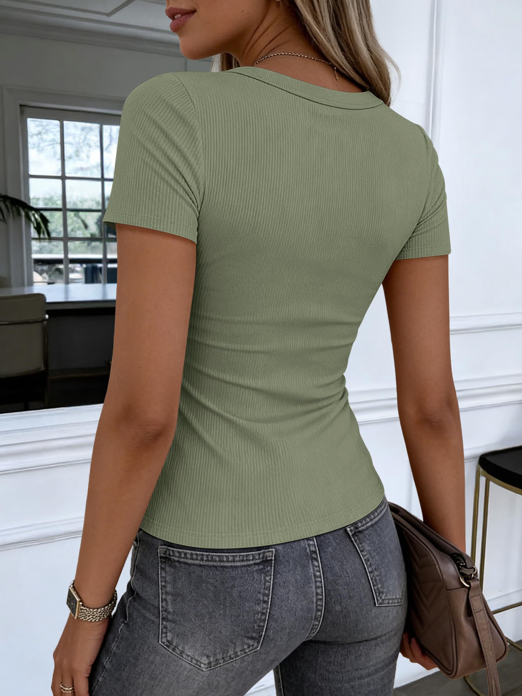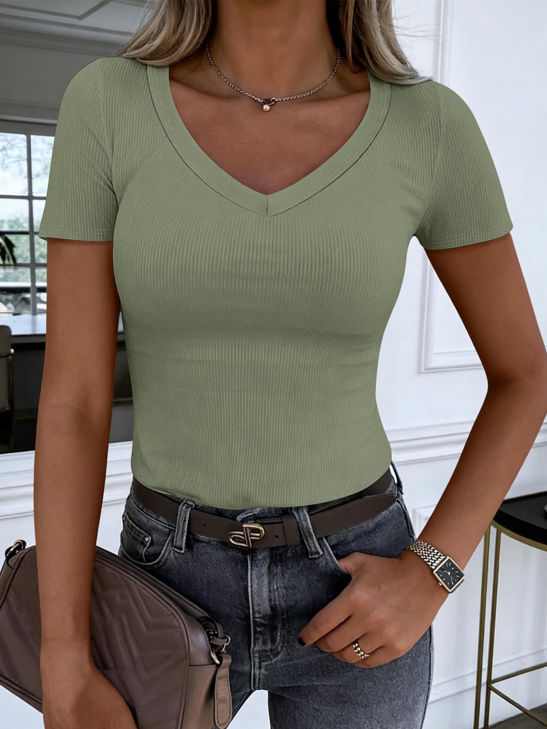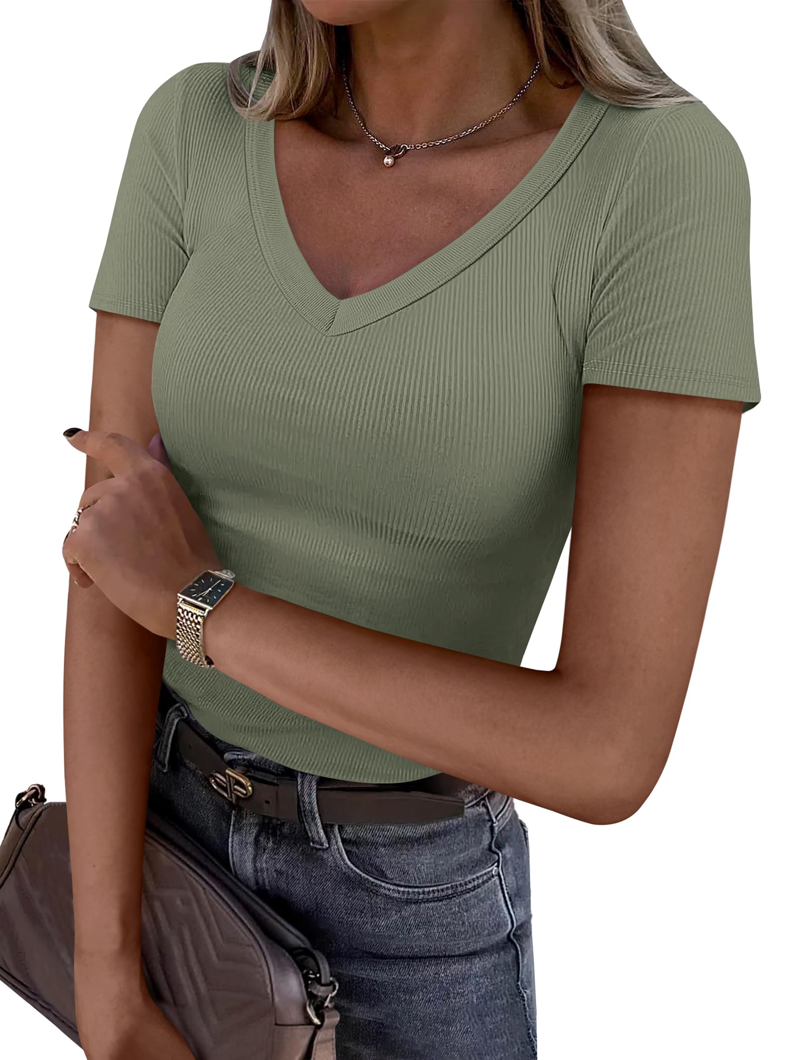 Features - Women's summer T shirt,V neck,short sleeves.This women's summer T shirt top perfect for daily wear, work, office, business.