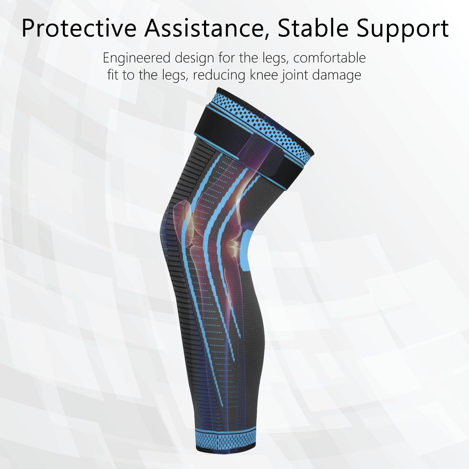 Improve Athletic Performance: Our long knee brace are suitable for all activities, such as running, walking, gym, cycling, basketball, hiking, and so on, to prevent injury. This leg knee support can also keep your knees and hat warm throughout the day.C