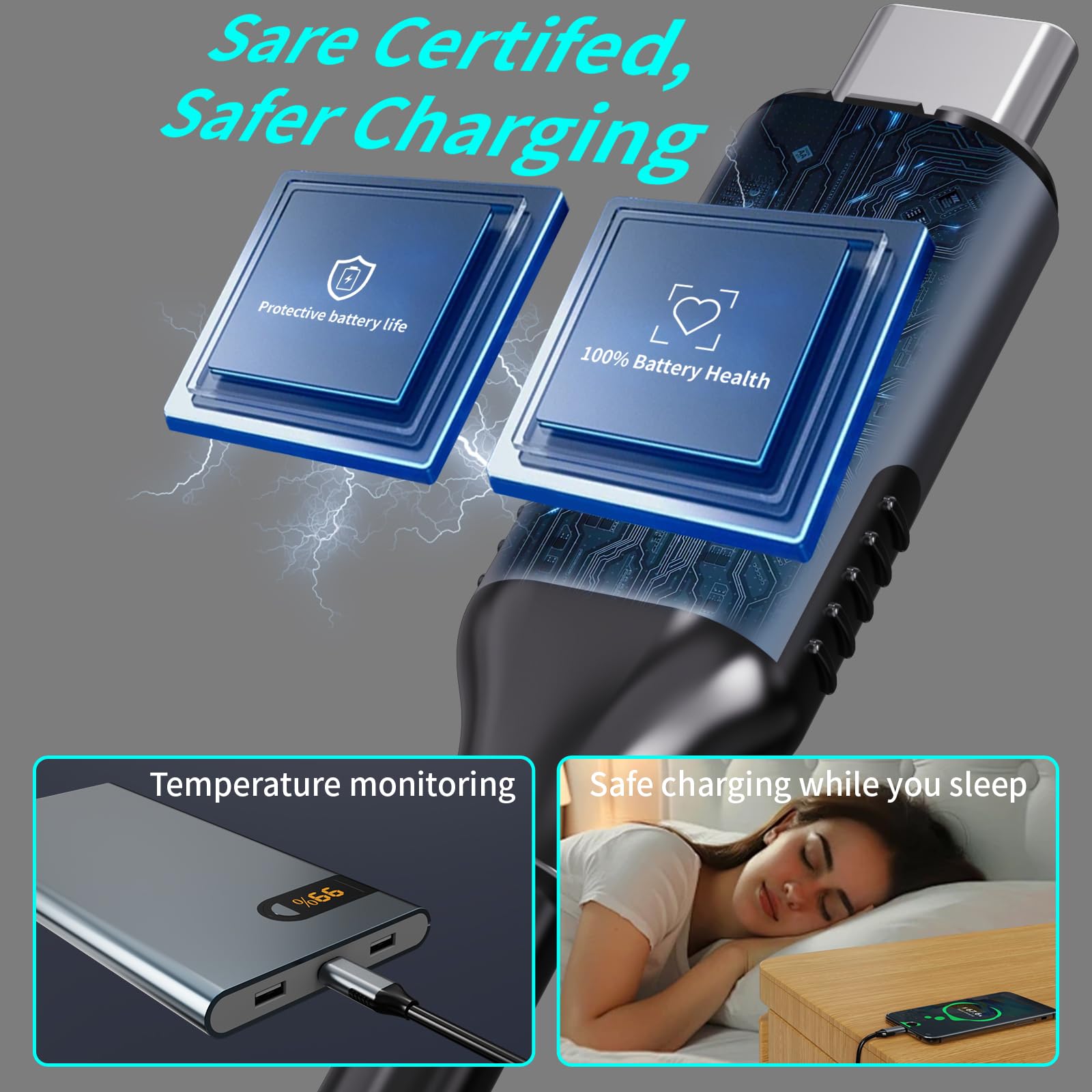 Safety first: The safety of your devices is paramount. Our compatible Thunderbolt 3 fast charging cable is made of premium materials with built-in overvoltage, overcurrent, and short-circuit protection to prevent potential damage during the charging process, ensuring 100% reliability and complete satisfaction.