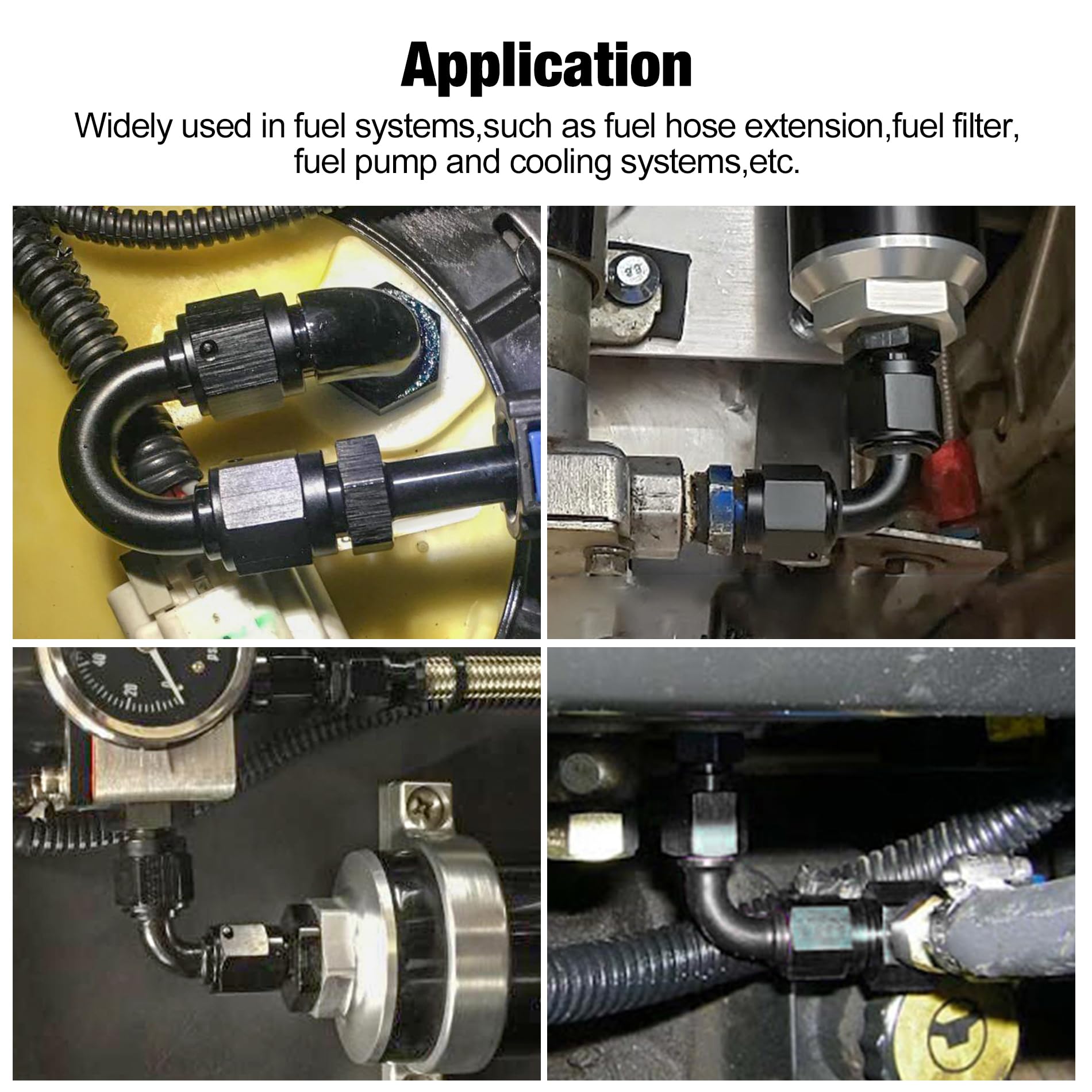 Size: The fitting is female AN8 to female AN8. The thread size is 3/4-16 UNF, and it is designed as a 180-degree elbow.