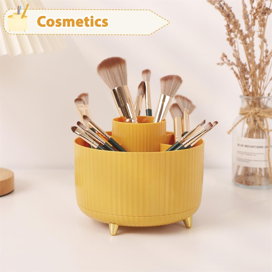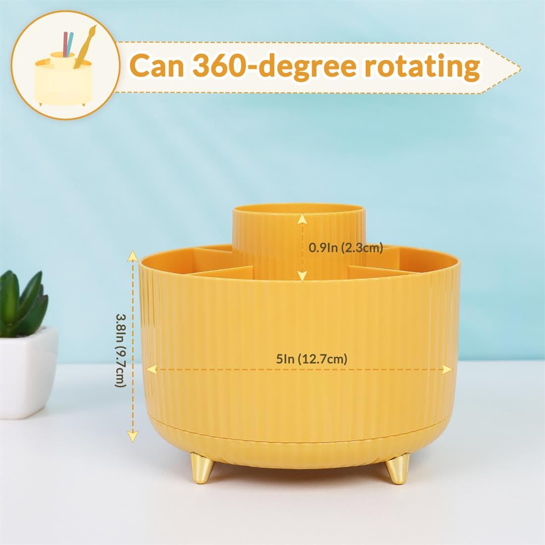 Say farewell to the days of digging through cluttered drawers or searching for misplaced pens. Our Rotating Pen Holder features a user-friendly rotating base, allowing you to effortlessly spin and select your desired writing instrument or accessory with a simple flick. Besides, the spinning makeup brush organizer is used as a perfume storage rack, and cosmetic lipstick rack in the bedroom or bathroom on the countertop, perfect for your vanity, or bathroom. Crafted with a modern aesthetic in mind, our Rotating Pen Holder doesn't just declutter – it elevates your desk's visual appeal. Its sleek design and durable construction make it a seamless addition to any professional office, creative studio, or home environment, reflecting your commitment to order and aesthetics. Limited desk space? No problem. Our Rotating Pen Holder occupies minimal real estate while providing maximum storage capacity. Its intelligent design maximizes vertical and horizontal storage, making it an ideal choice for compact workstations where efficiency is paramount.