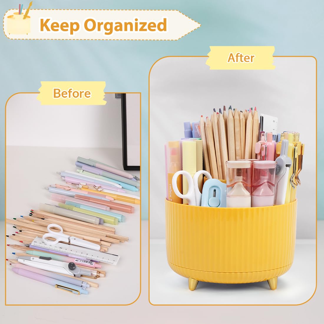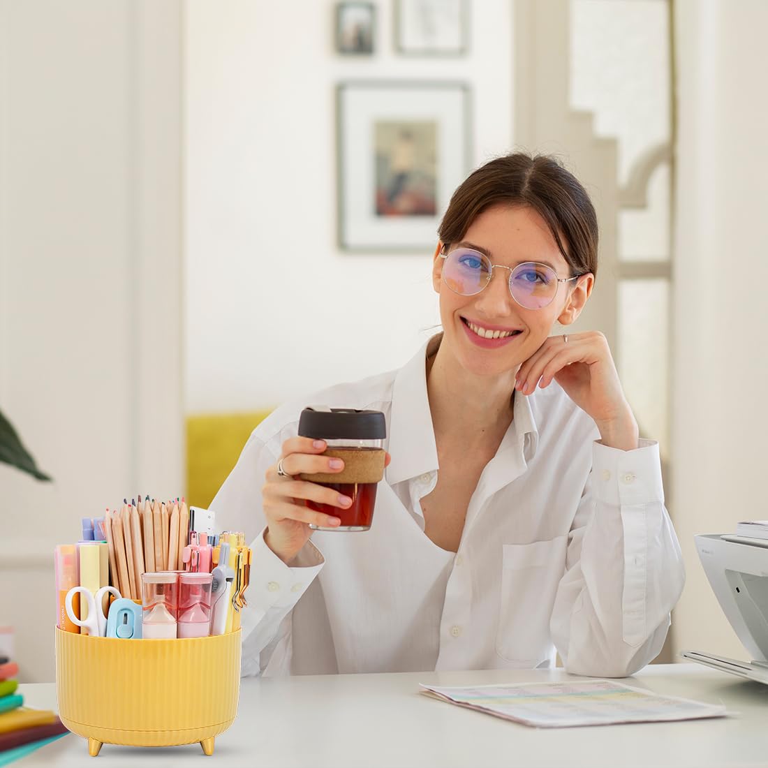 Practical Choice: The rotating pen holder combines practicality and decoration. It keeps your workspace tidy by organizing pens, pencils, and small items, while its stylish design adds a decorative touch, making it both functional and visually appealing