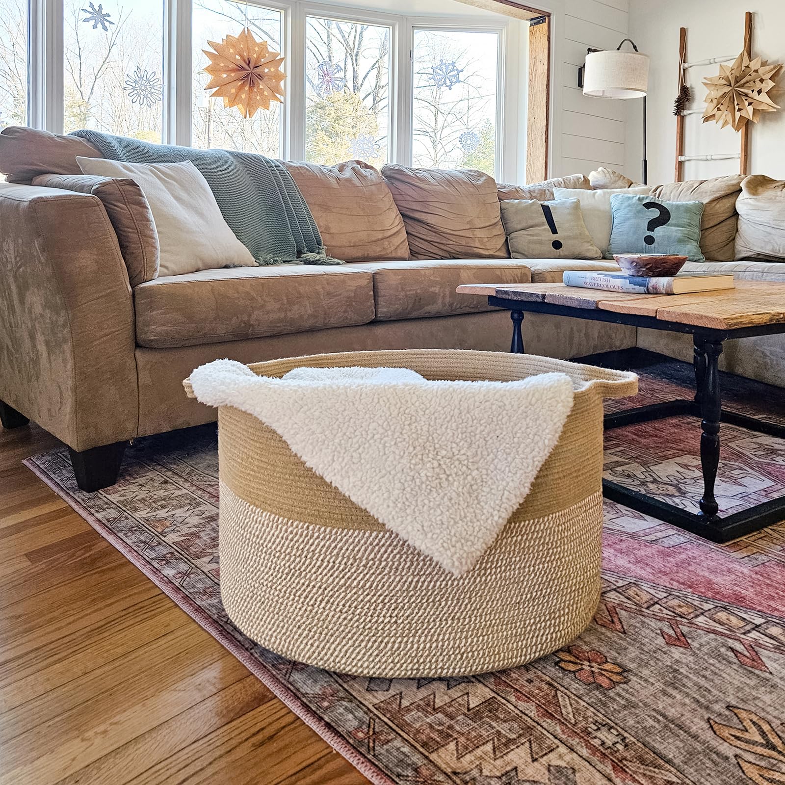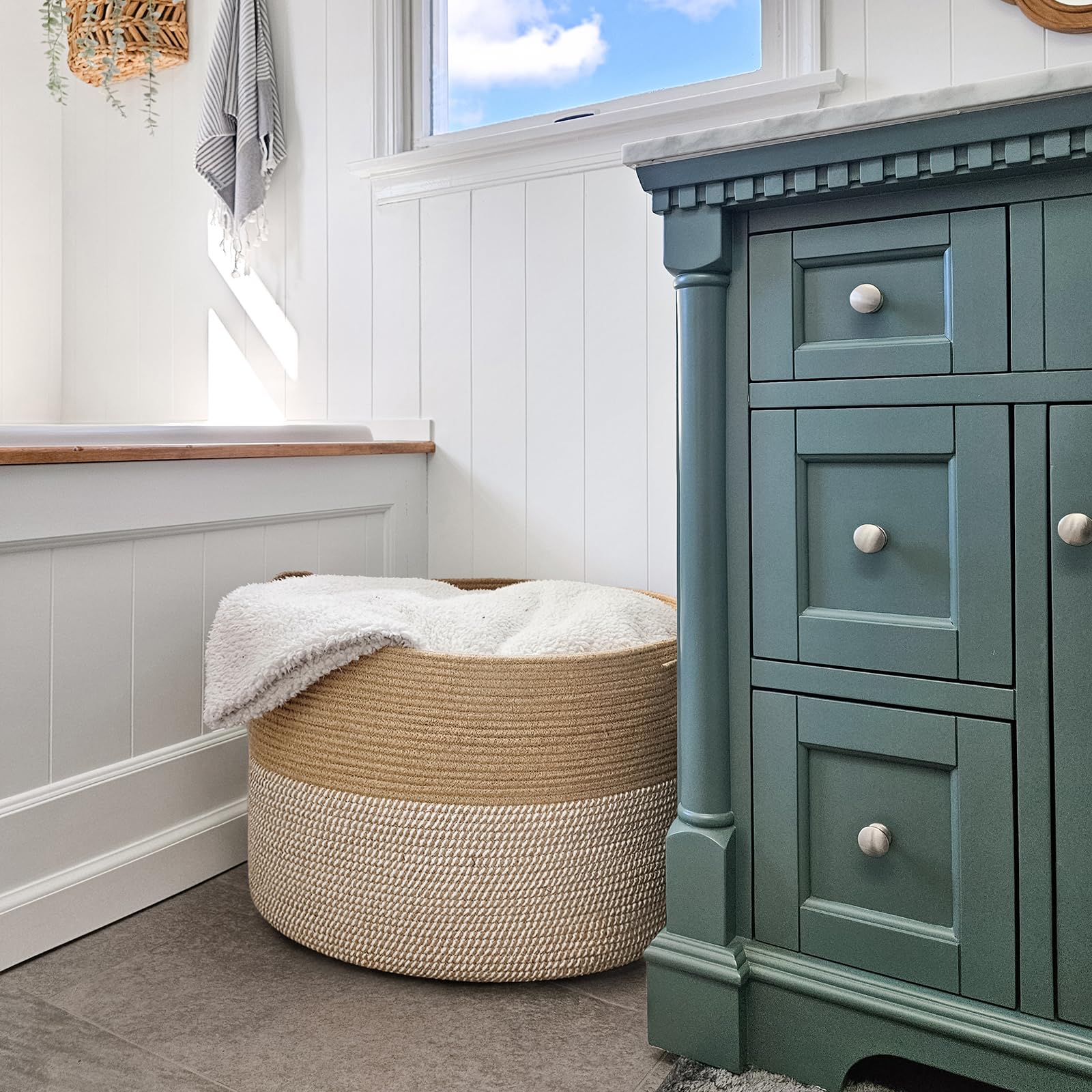 Neutral Design Matches Any Decor: Our white and jute blanket basket seamlessly blends into the laundry room, bedroom, bathroom, or living room space. The stylish design is the perfect compliment to modern, boho or farmhouse room décor