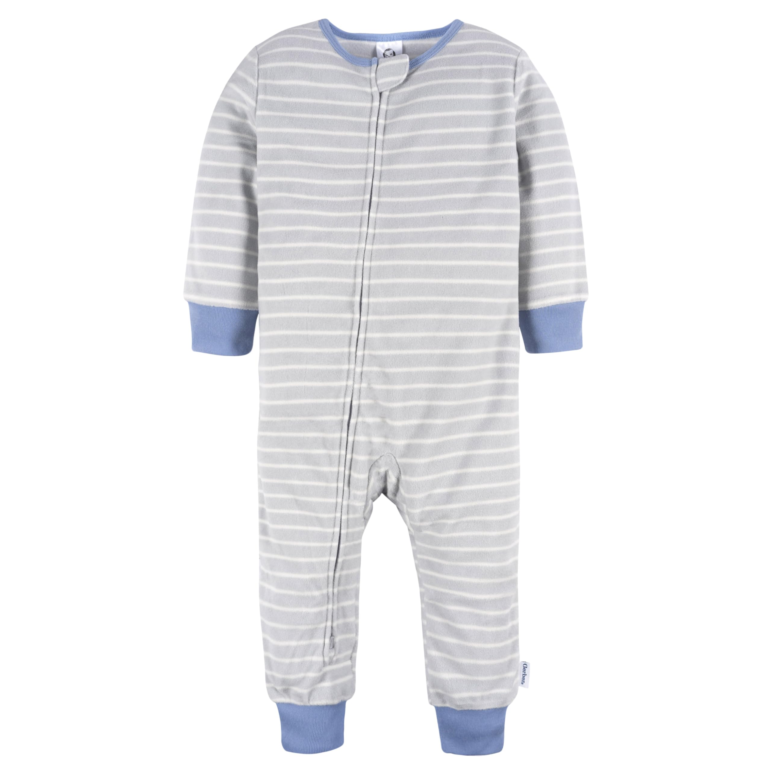 Description These blanket sleepers are the ultimate cuddle companions! Our baby and toddler pajamas are crafted from luxurious microfleece for maximum comfort. Equipped with a user-friendly two-way zipper and neckline protector, these footed pajamas make dressing and diaper changes a breeze while keeping your little ones cozy. With a variety of adorable designs in each pack, bedtime becomes a playful part of your bedtime routine. Flame resistant for child safety.