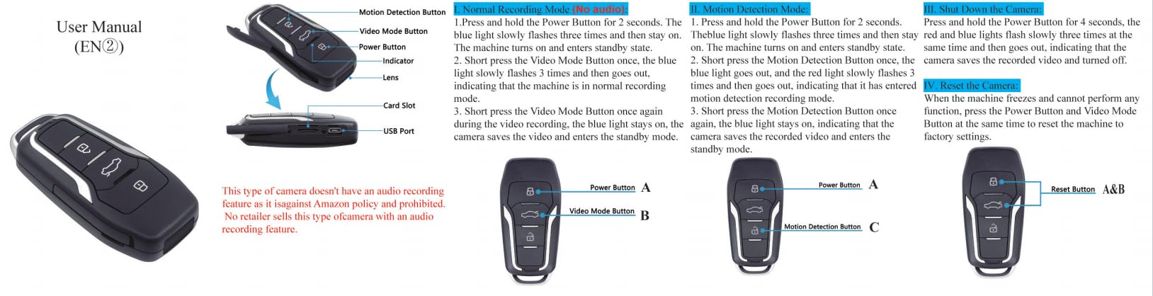【Built-in 64GB Internal Memory】 The hidden cameras built-in a 64G card. The spy cam can be used directly after received. No need to buy another storage card. You won't waste your time and energy to buy memory cards. Support up to 128G TF card(Includes 64GB Card)
