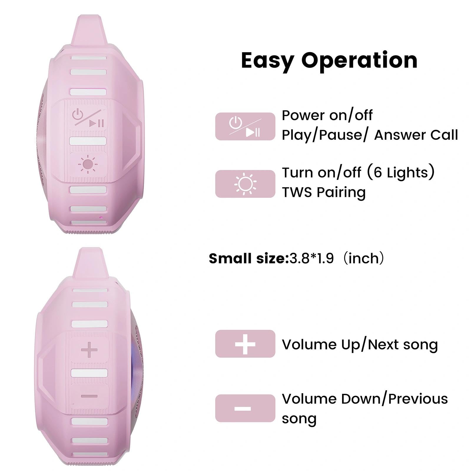 ♬【Portable & Compact Design】: just 3.8 inches, and comes with Clip and Lanyard, easily attach the speaker to backpacks, tents, or other gear, making it convenient to carry around during hiking, camping,also built in 2000mAh polymer battery, providing 12-24 hours of music playback at 40-70% volume, it is an ideal choice for outdoor activities!