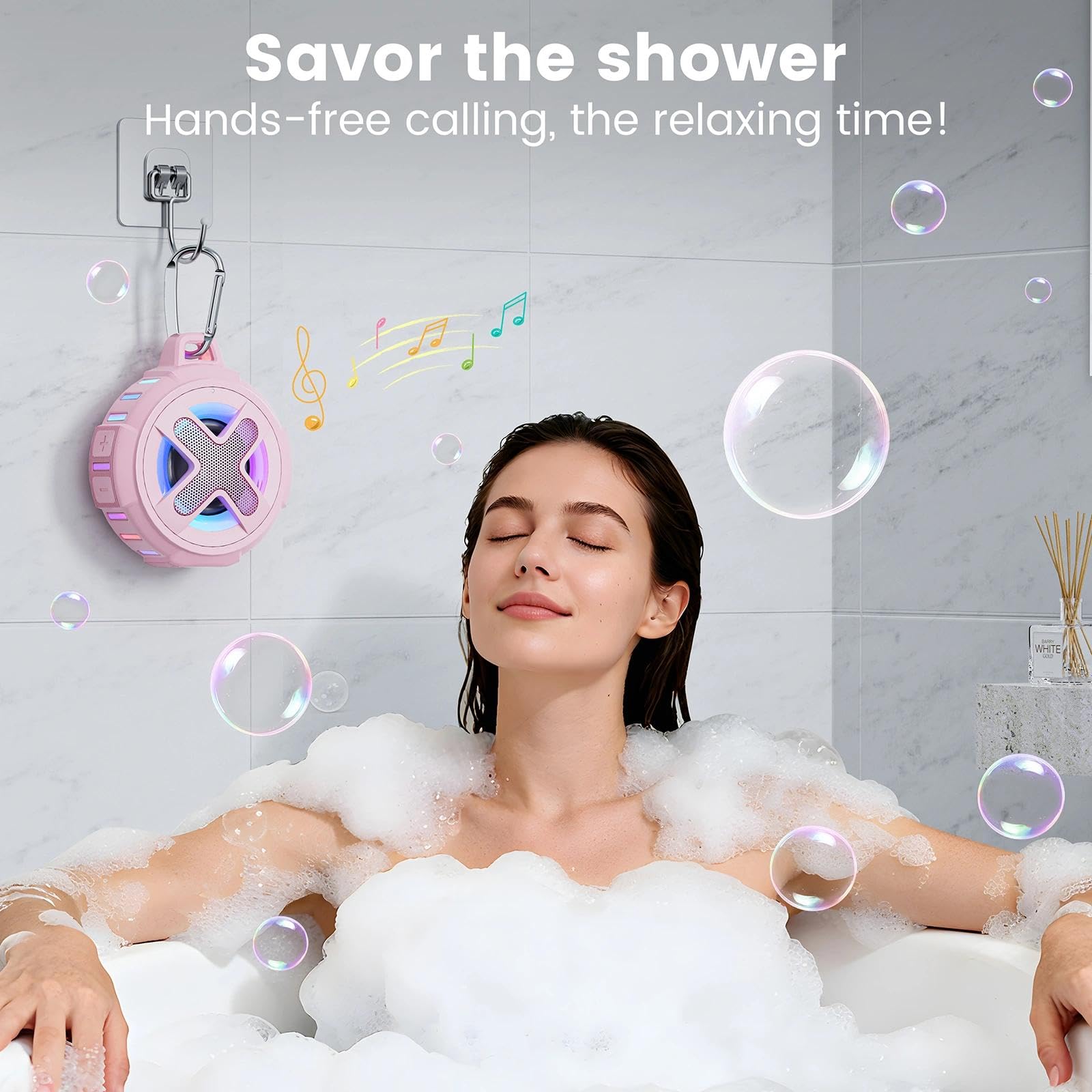 ♬【Floating Design]】The perfect structural design also allows this shower speaker to float on the water surface. When you are surfing in the bathroom, swimming pool, beach, or even rowing or kayaking, you can enjoy music to your heart's content without worrying about water leakage or missing the speaker (note: when the speaker enters the water, the sound will become very small and the Bluetooth signal will weaken and disconnect)