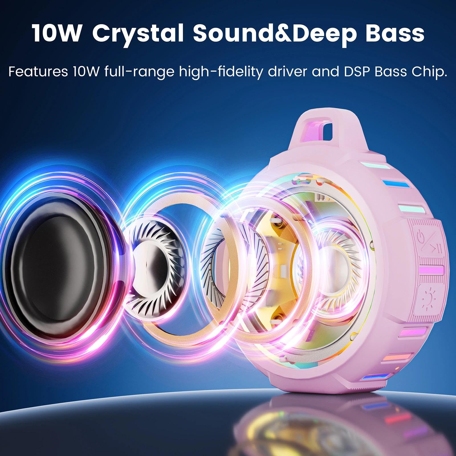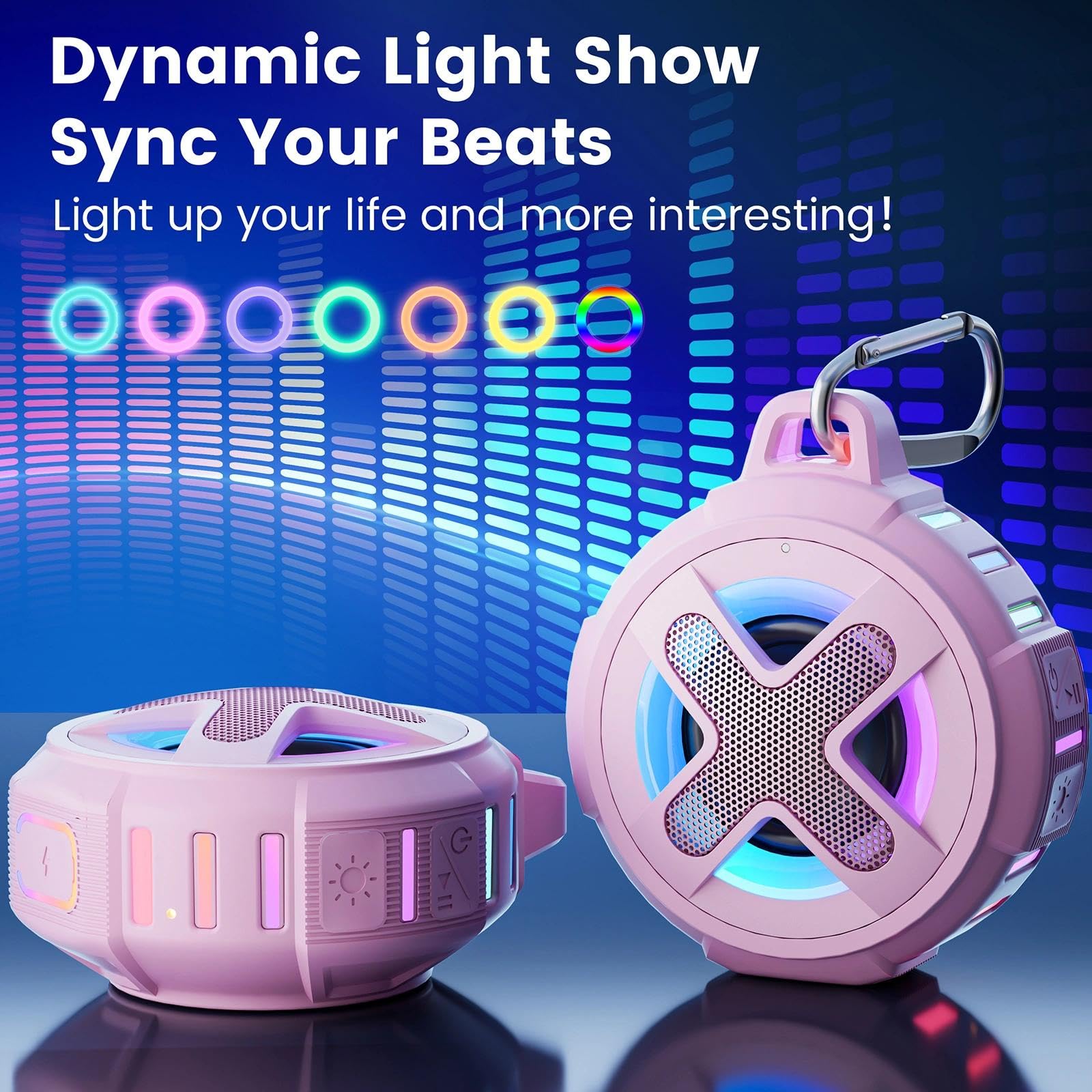 ♬【6 Modes RGB Light Show】Waterproof shower Bluetooth speaker X8 can light up your life. You can enjoy the RGB light show when you using the shower speaker listen music. 6 modes RGB light let your life become more interesting at night. Our Cool RGB Bluetooth Speaker can be as a gifts for Kids,teens,boys,girls,men, women, your friends or family!