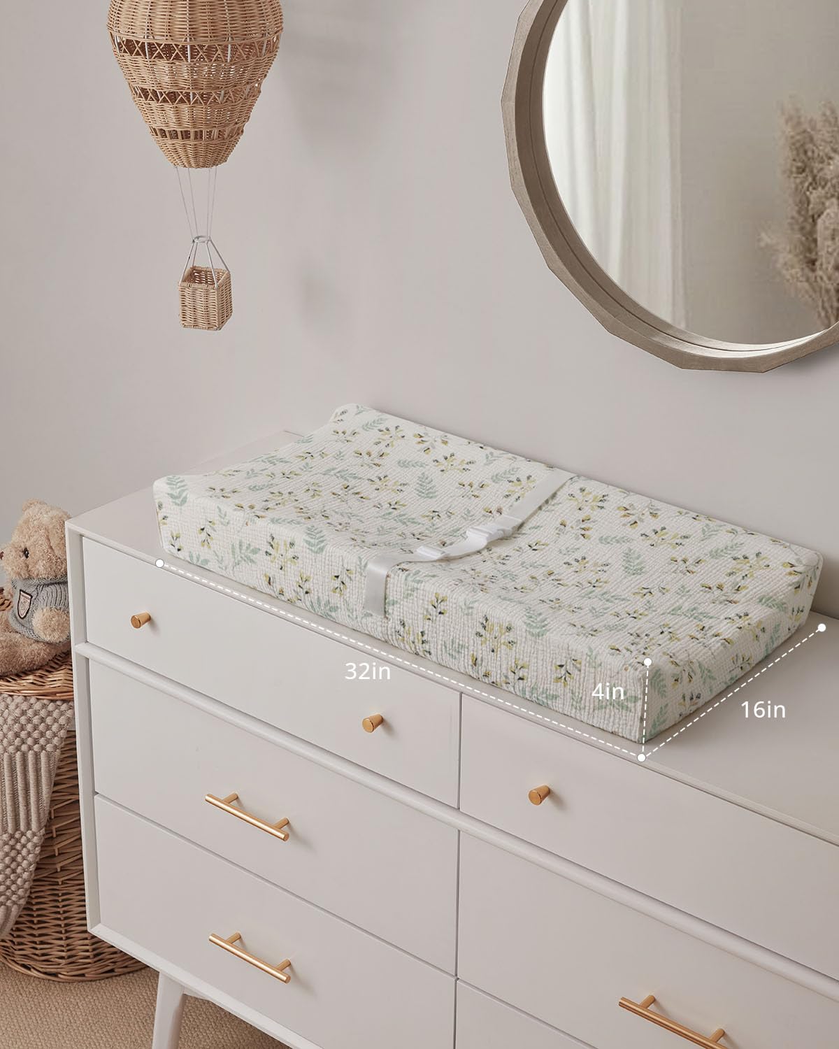 Design Your Dream Nursery: Our muslin baby changing pad in Botanical Leaf brings a fresh, natural charm to your nursery. It's the first choice for modern parents, an unforgettable unisex baby shower gift that new parents will love